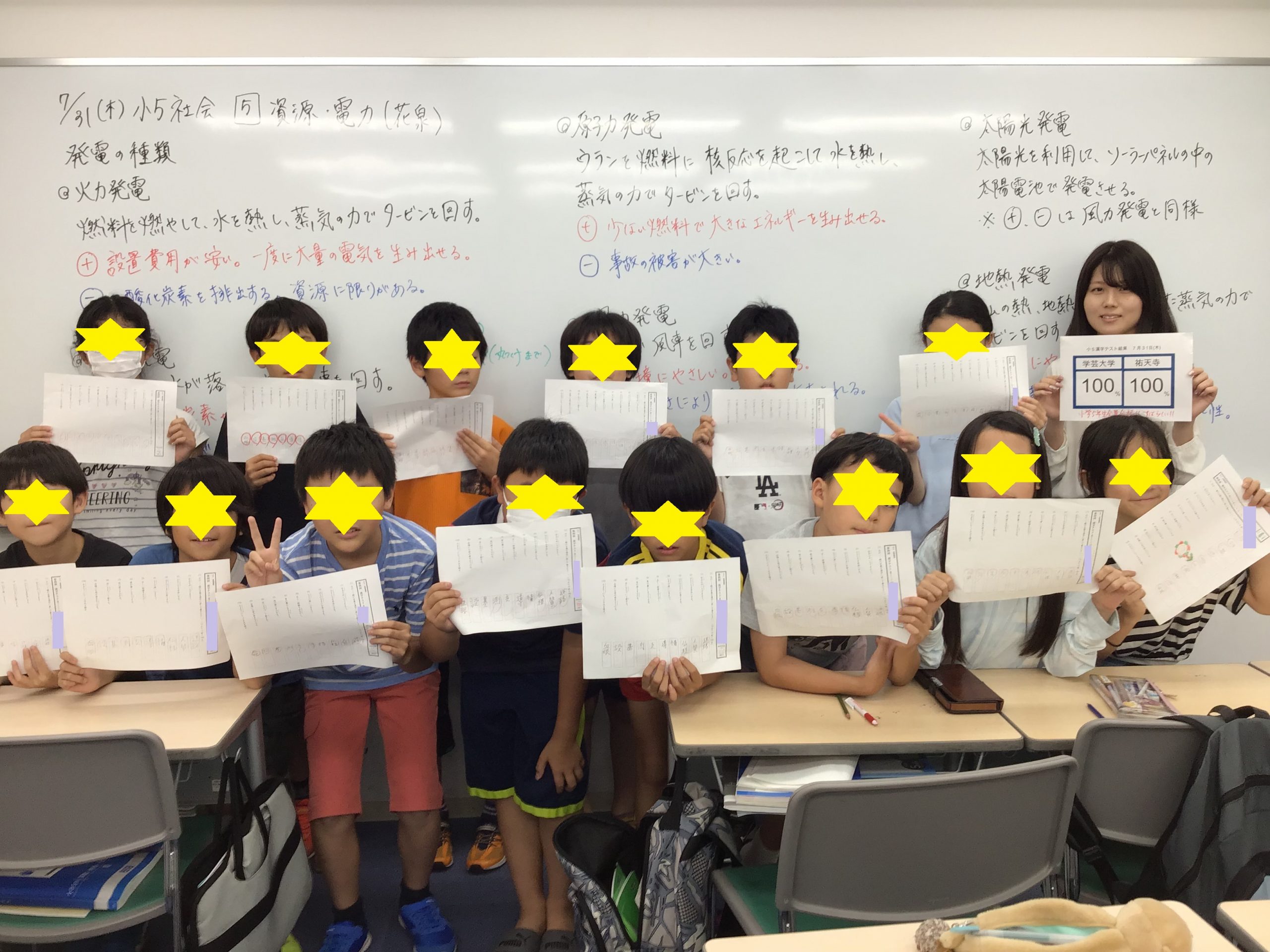 小テストで両校が競いあっていますが、小学5年生の漢字テスト