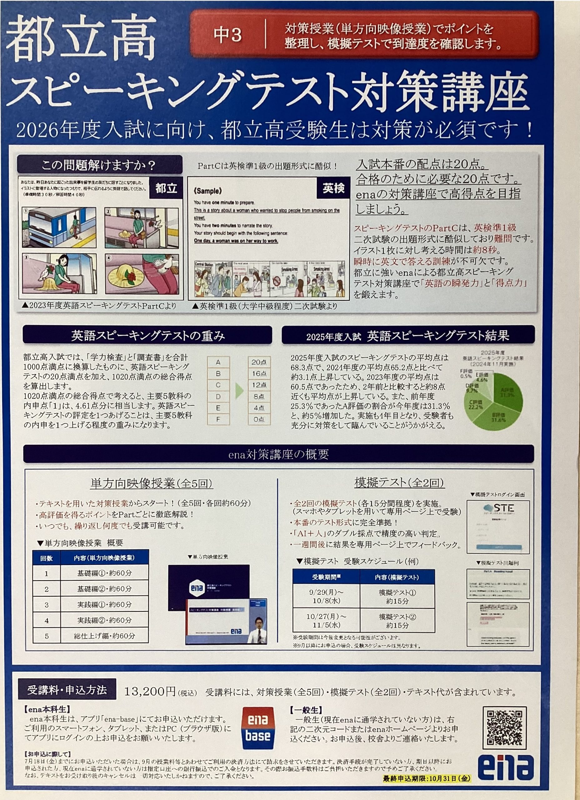 今日は中学3年生に向けてのご案内です。11月にスピーキング