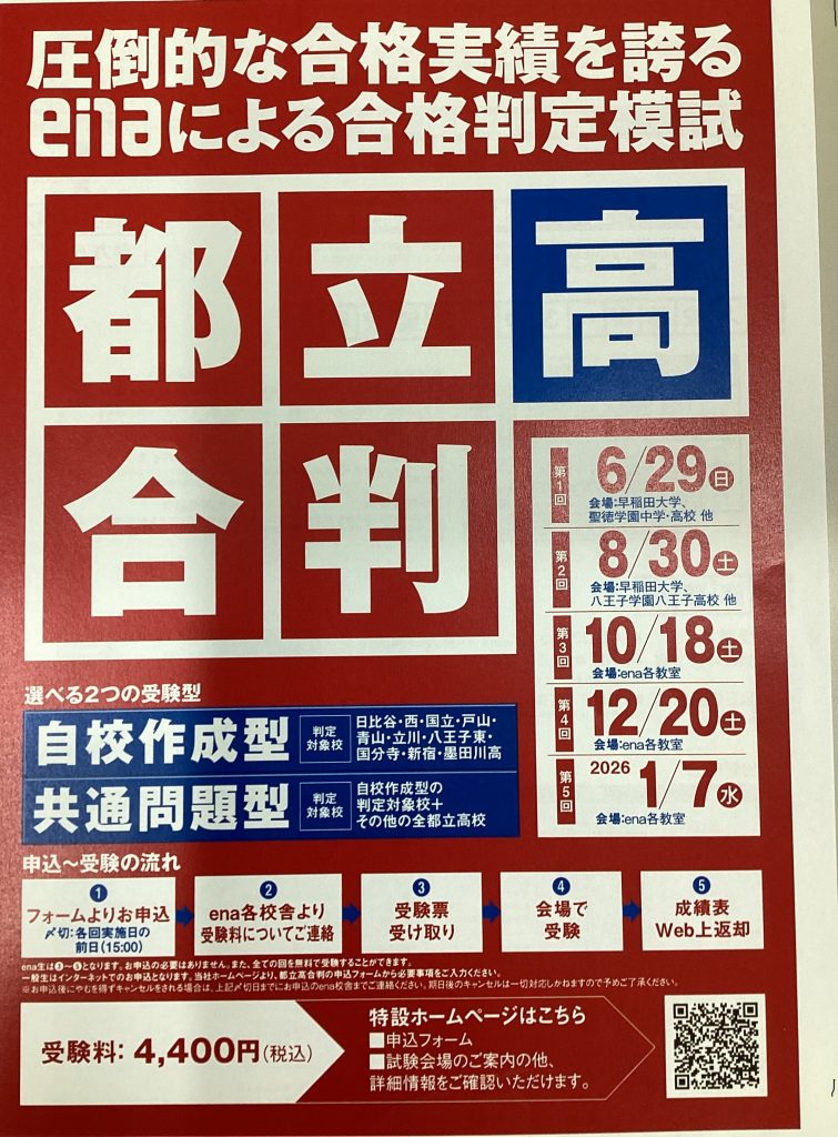合格力診断テストと中学3年生対象の都立高合判です。ふだんena