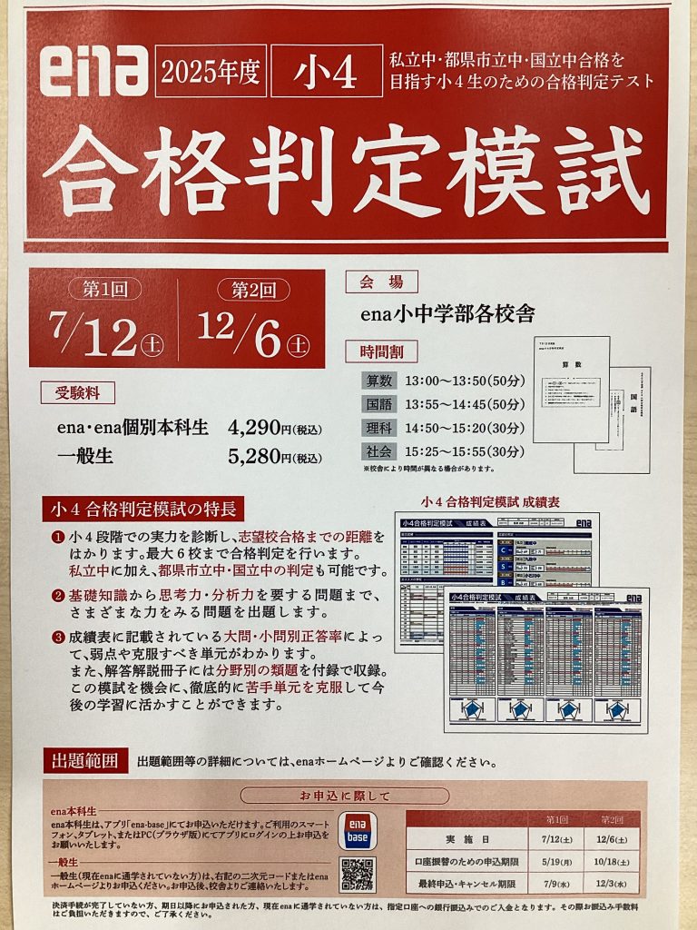 本日は小学4年生・小学5年生を対象にした「合格判定模試」のご案内です。
