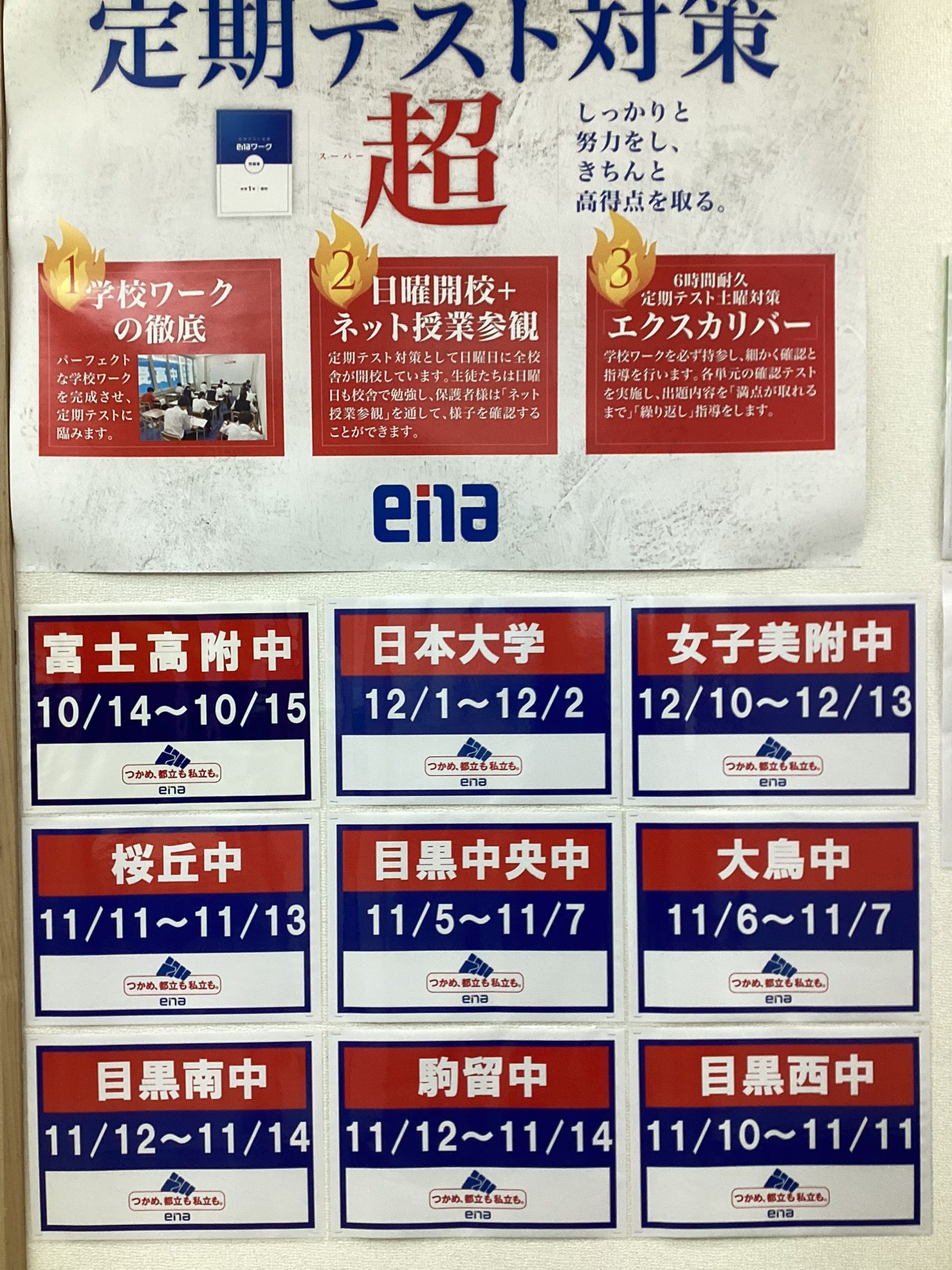 ena学芸大学では目黒中央中の定期テスト対策を始めました。大鳥中