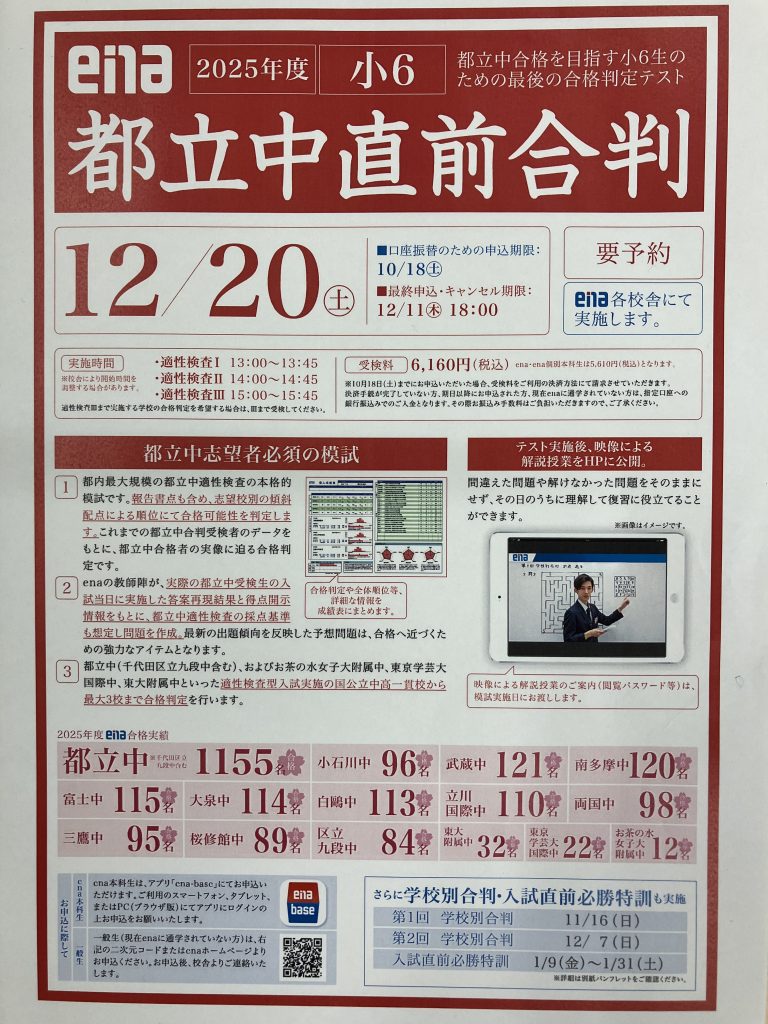 第2回学校別合判と都立中直前合判のご案内