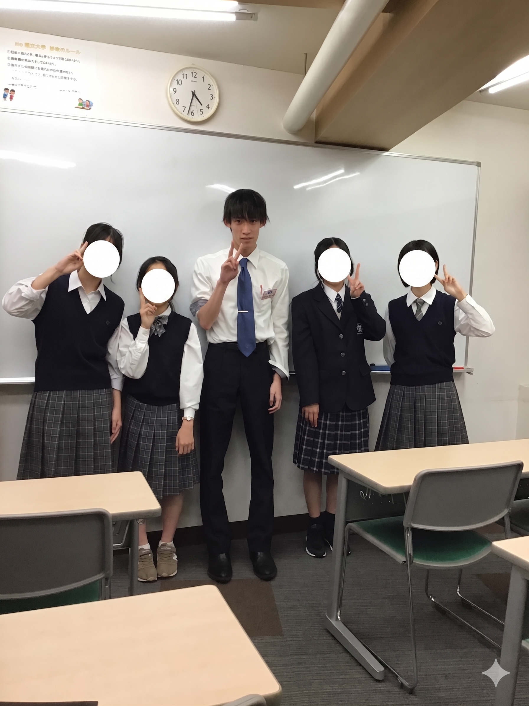話しているうちに小6生たちが登塾してきたので、制服を見せたり軽く質問タイムを設けたりしました。