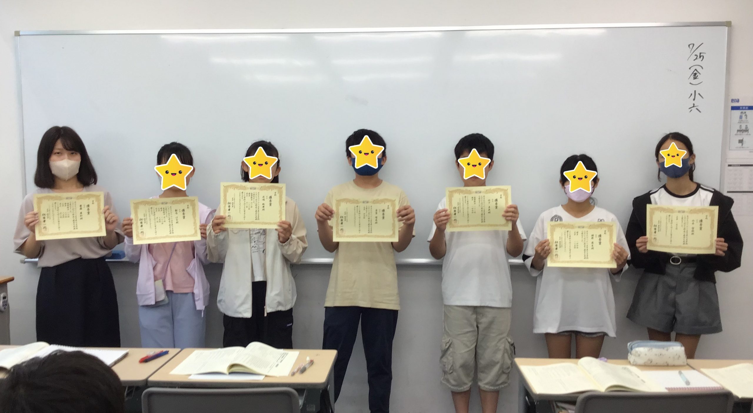 7月学力判定テストの結果が上位ランキングに載った生徒に、表彰状を贈りました!