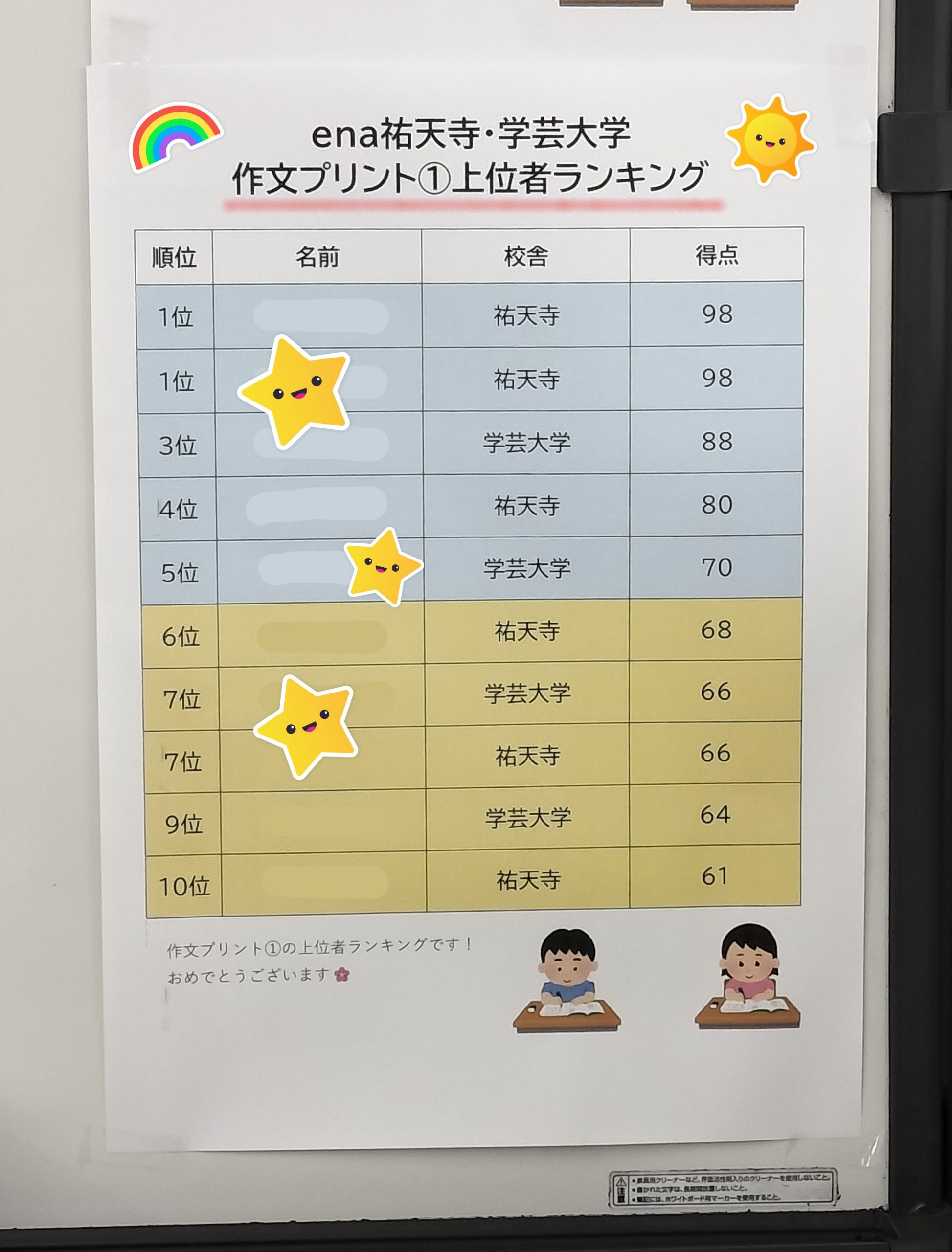 小6作文プリントの上位者掲示