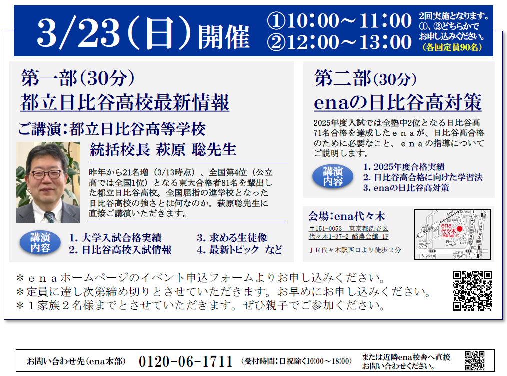 3月23日、enaが主催する日比谷高校講演会の開催が決定しました。