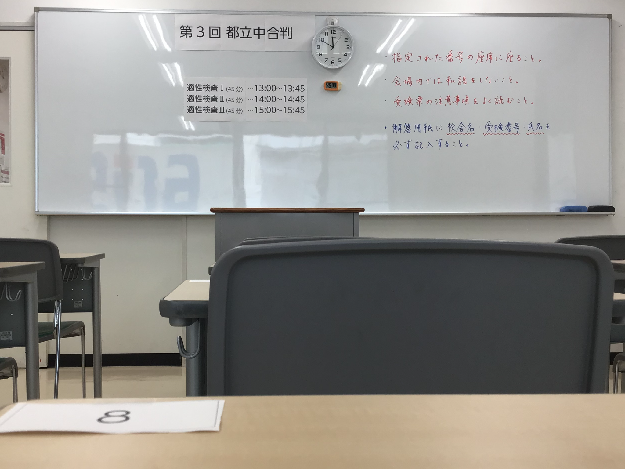今日は、第3回都立中合判が実施されます。