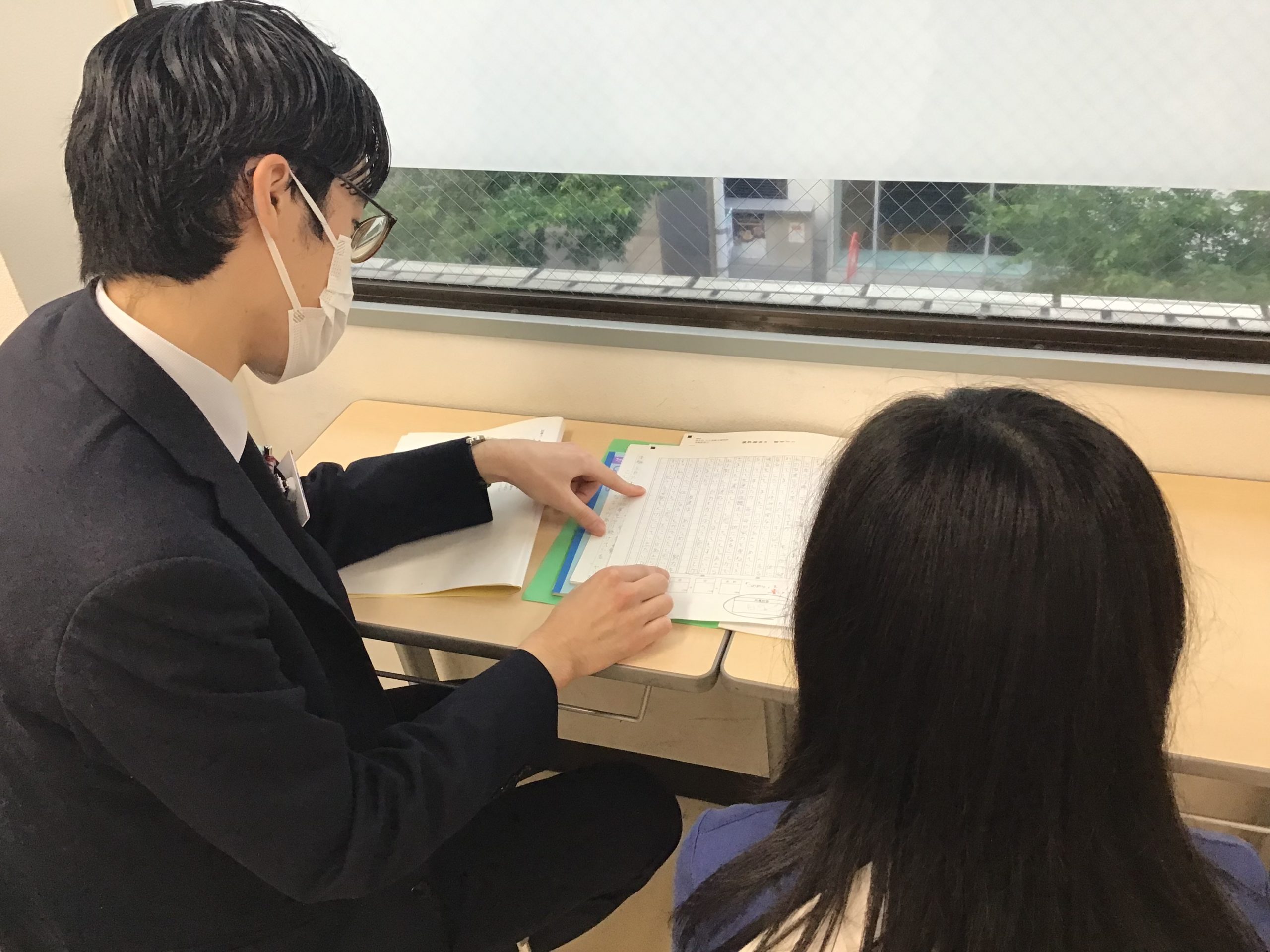 (小6ではおなじみの、窓ぎわ面談です。)