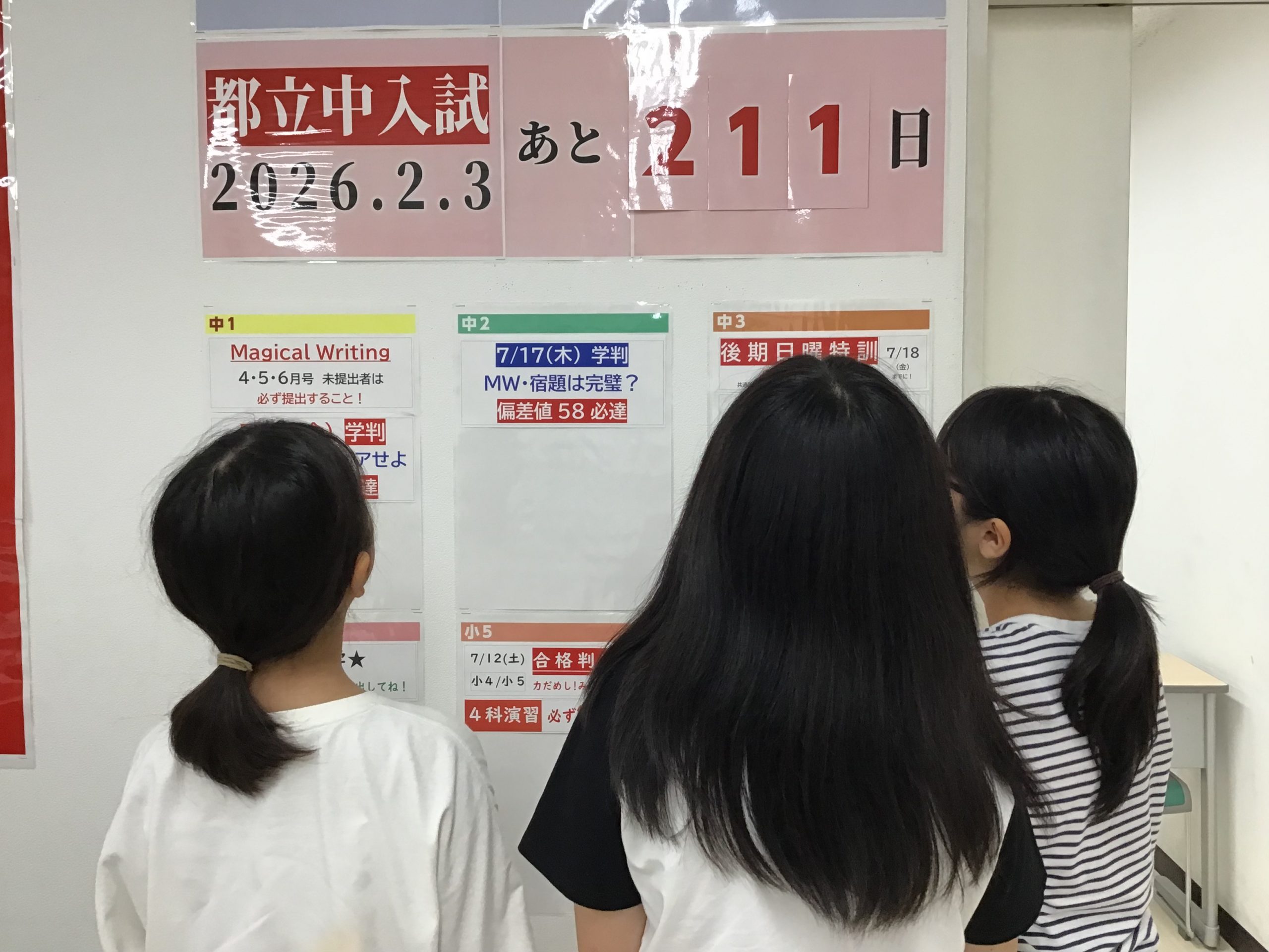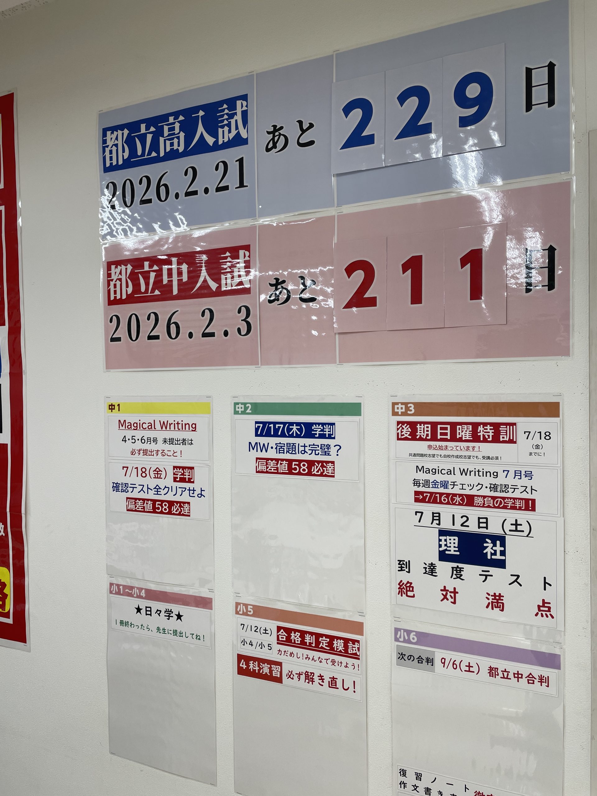 田町の校舎では、入試に向けたカウントダウンを開始しました。
