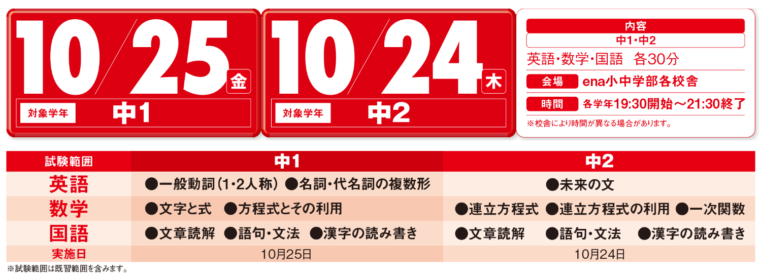 日時:10月25日金曜日 19:30~21:30(英数国 各30分)