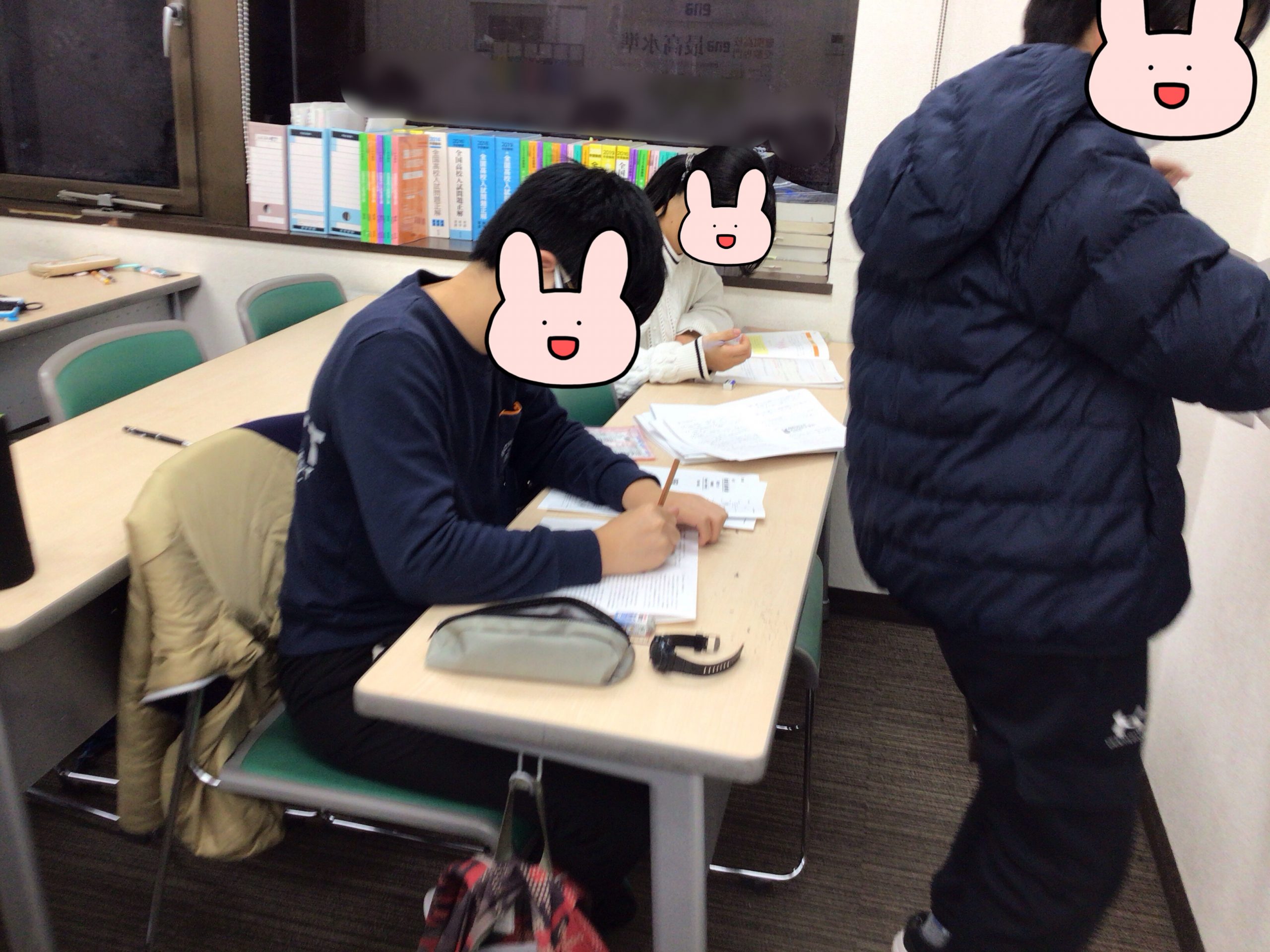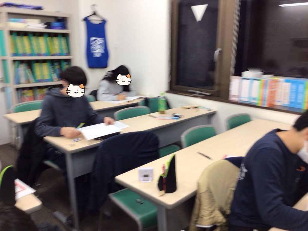 午前の入試を終えた後にもかかわらず、自習室は超満員です。