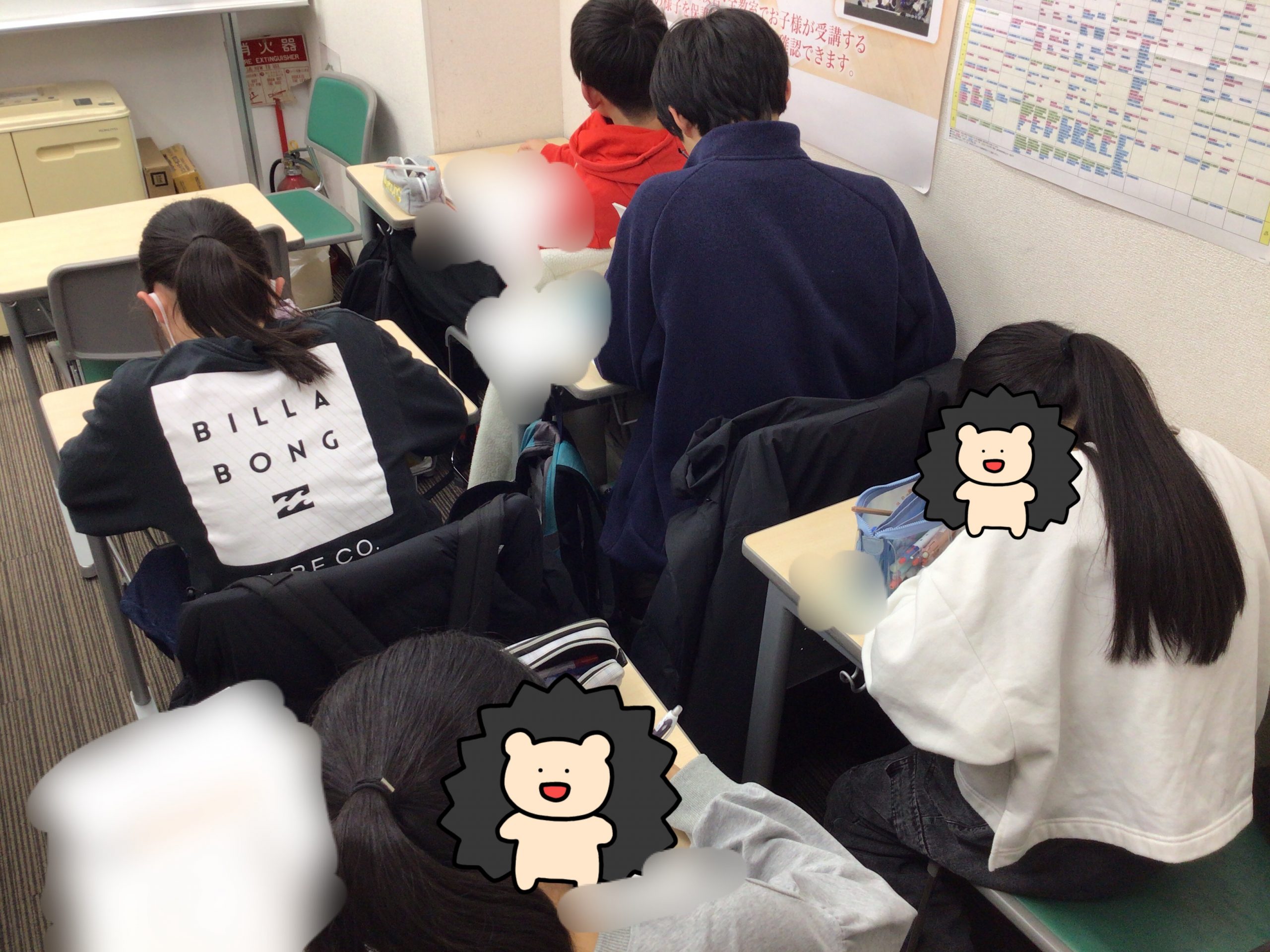 教室開室後30分で自習をしに来る小6たちはひたすら問題演習をこなしています。