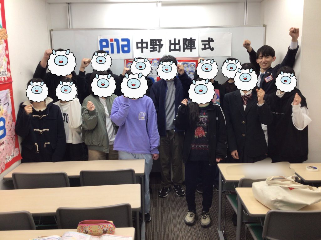中野校では都立高入試の前日に中学3年生の出陣式をおこないました。