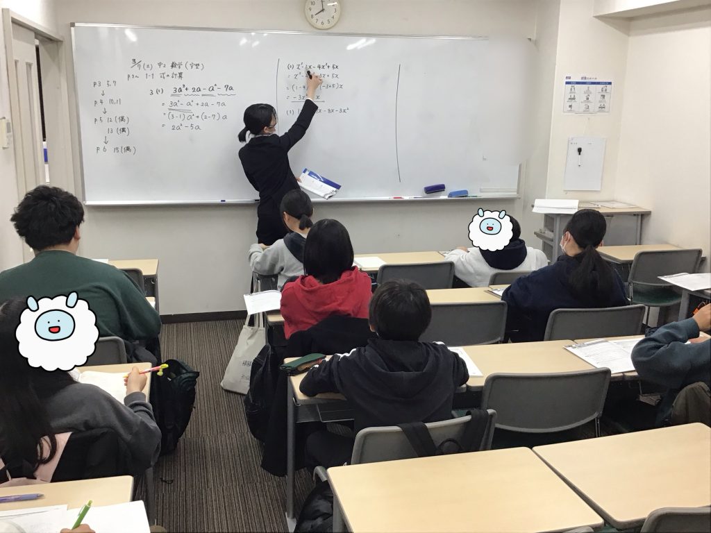 中学1年生のころに学んだ内容を応用したような単元が多くなる数学ですが、2月までに基礎をしっかりと固めて授業に臨んでおります。