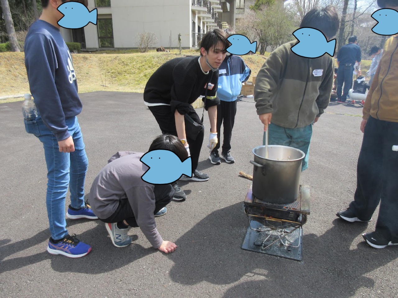 4日目は豚汁を作りました。なぜか中腰の内藤。