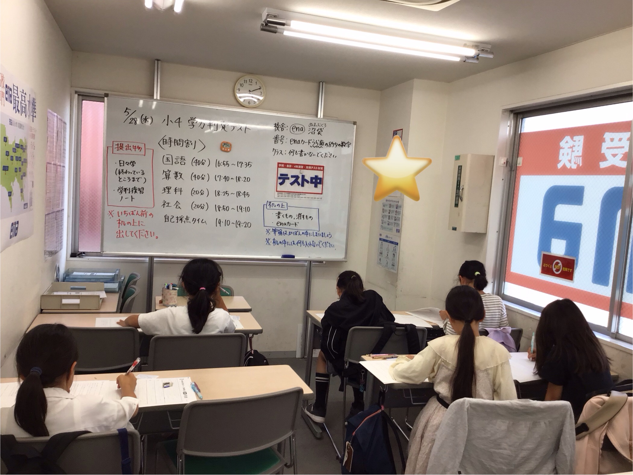 本日は小4と中1が学力判定テストです。