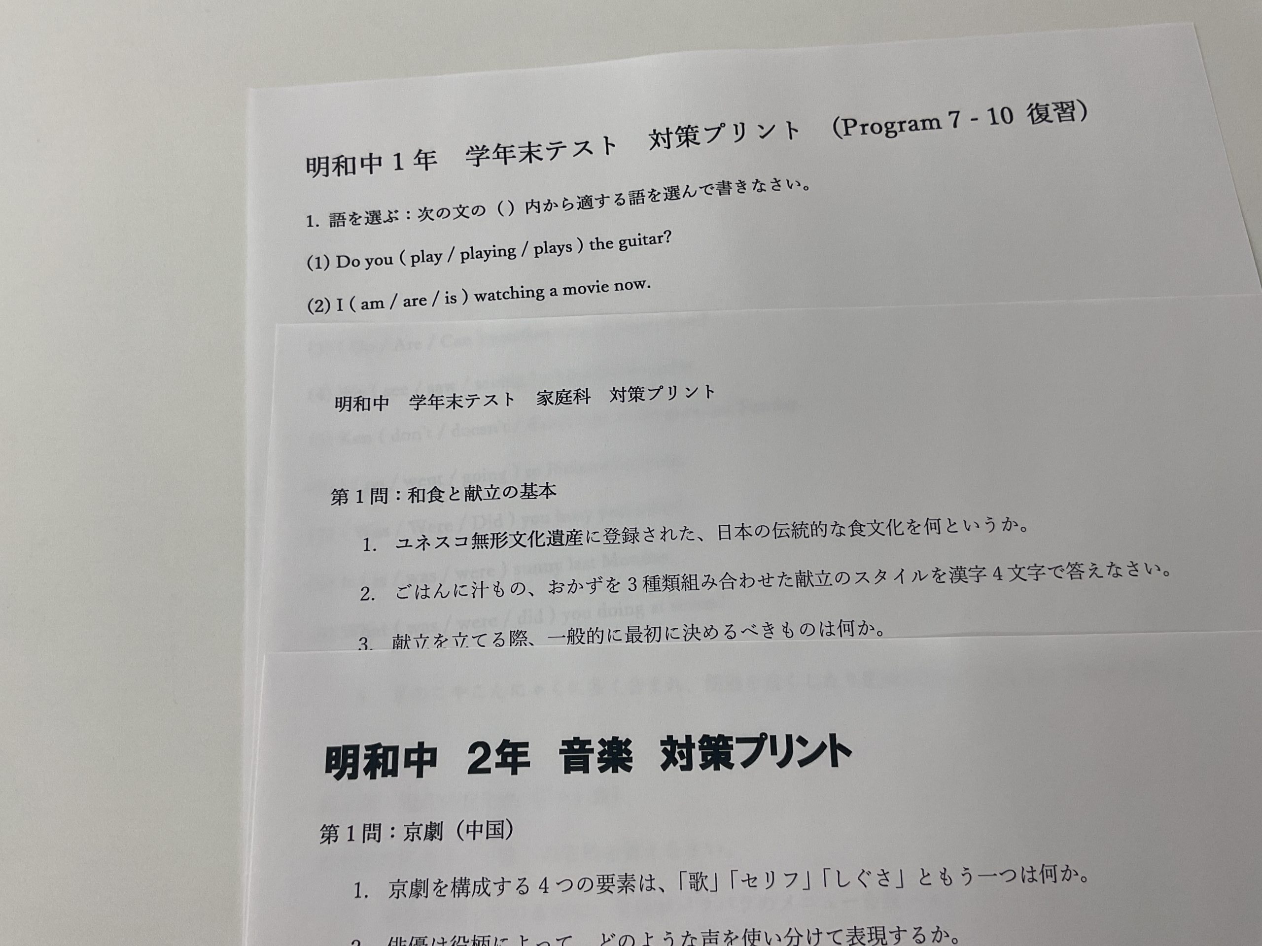 音楽や技術家庭も対策プリントも用意したからか、