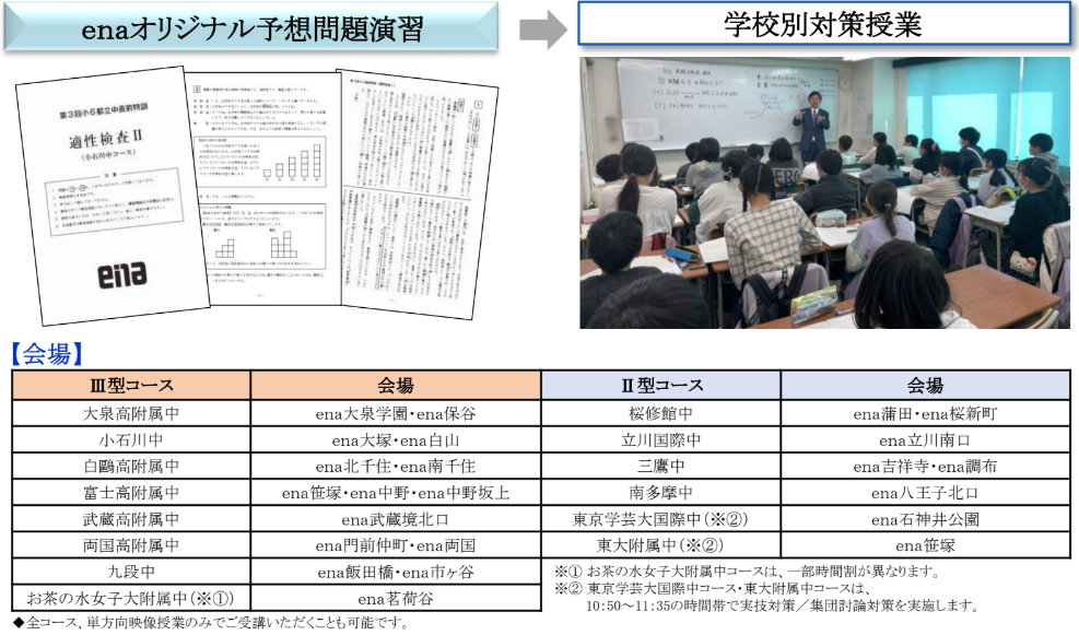 直前特訓では、enaオリジナルの予想問題を用いて、