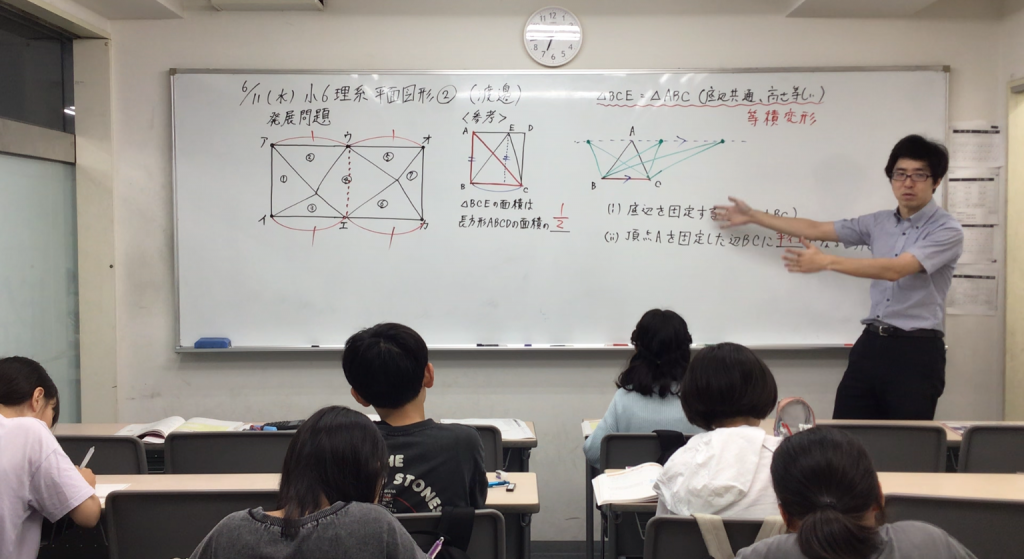 小6は現在、理系科目は2クラスに分かれて授業を実施しています。