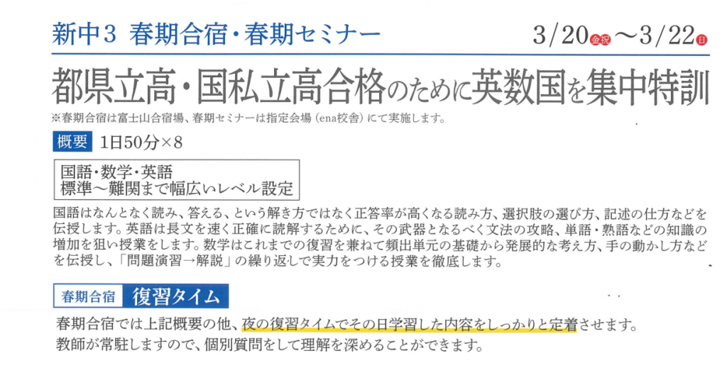 春期合宿・セミナー(3/20~3/22)
