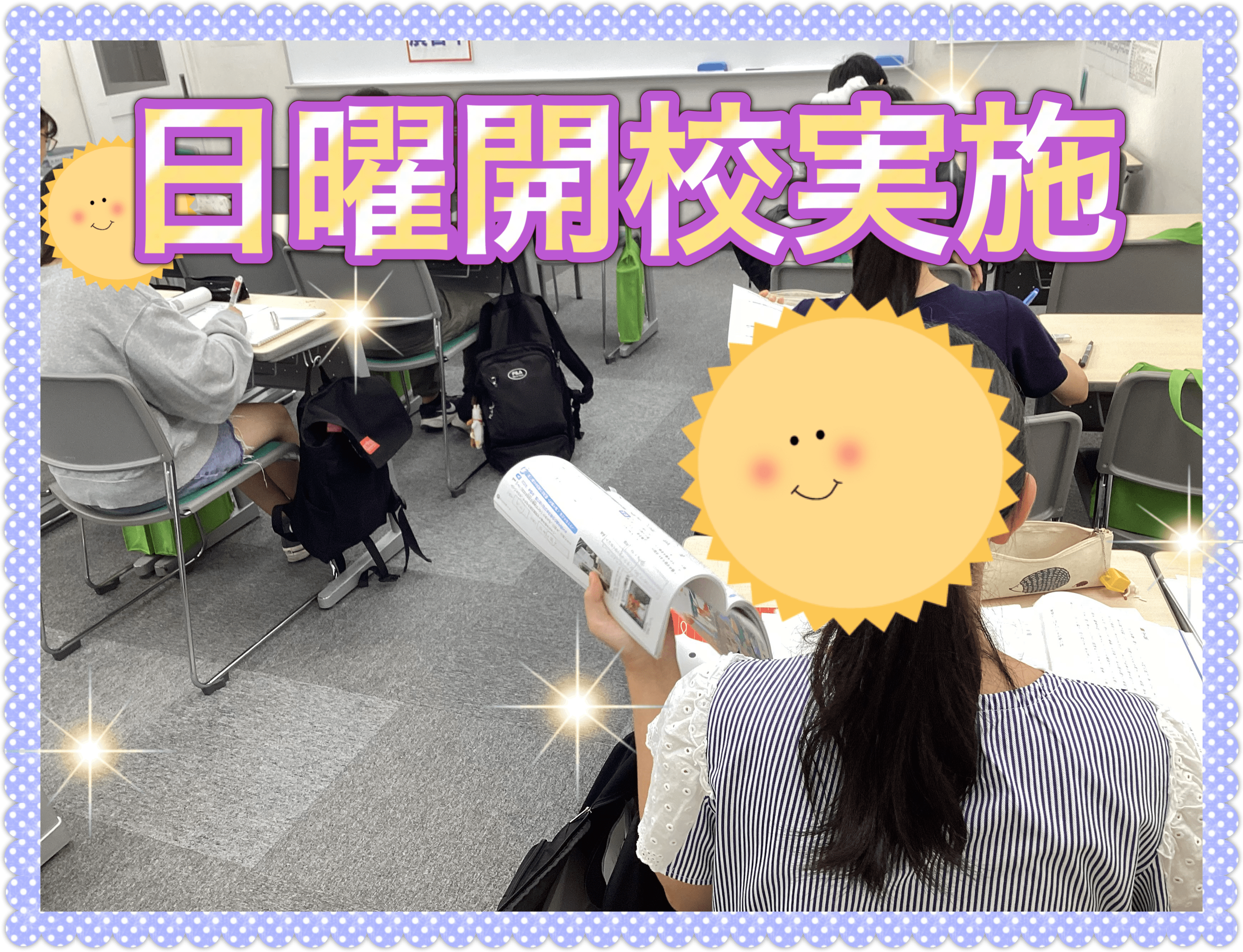 定期テスト直前の日曜日と、その前の週の日曜日日曜開校を実施しています。