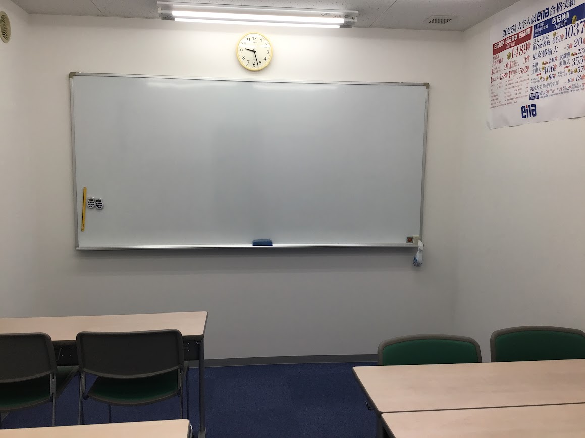 5つの教室の中で最もコンパクトですが、ホワイトボードやタイマーは常備しているため、学判などのテスト時にも使用しています。