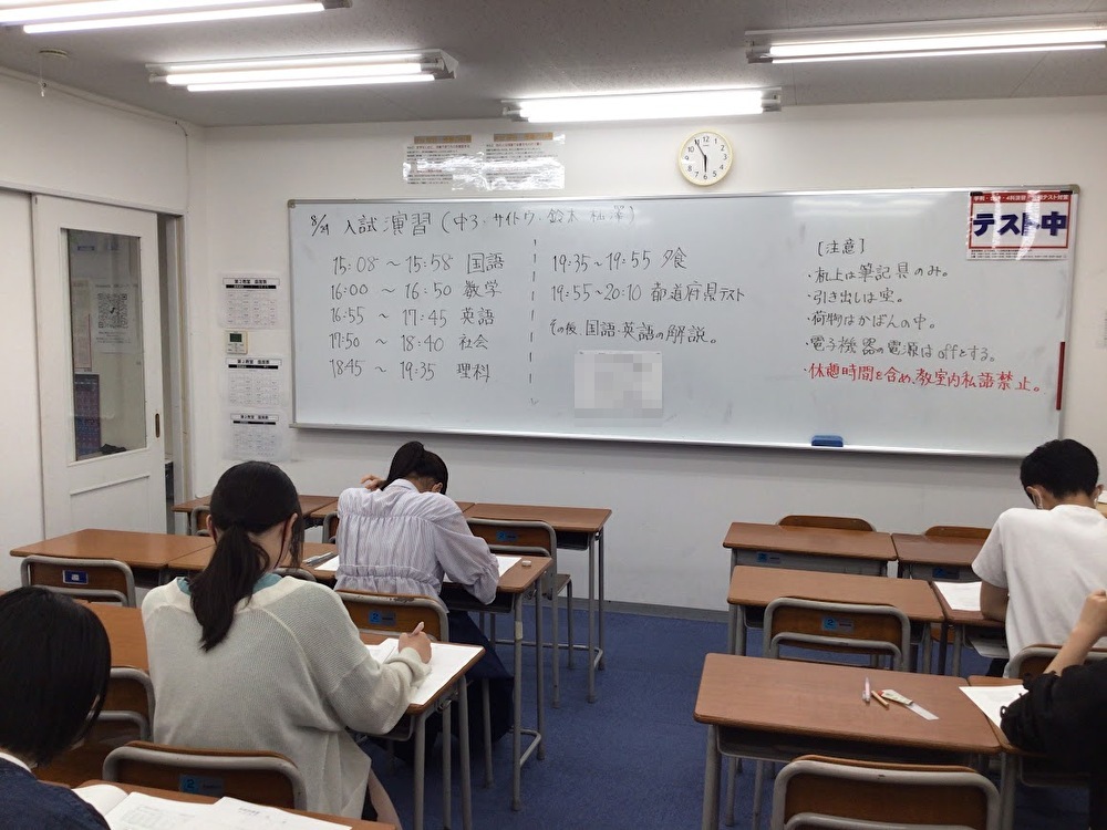 こちらは、午後から始まった中3の入試演習。