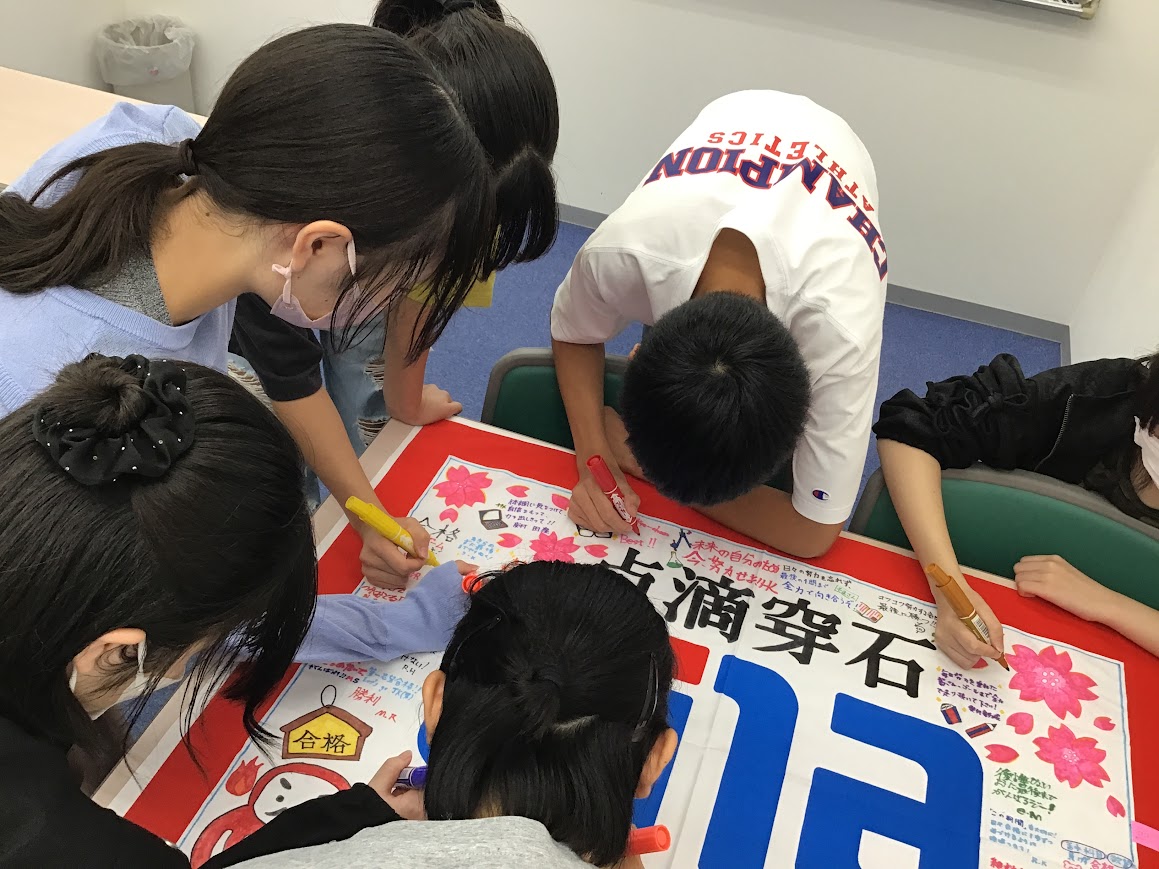今年は、受験勉強を全力で頑張る生徒と、受験学年を担当する教師、そして校舎を支える受付の50名弱がメッセージを書く予定です。