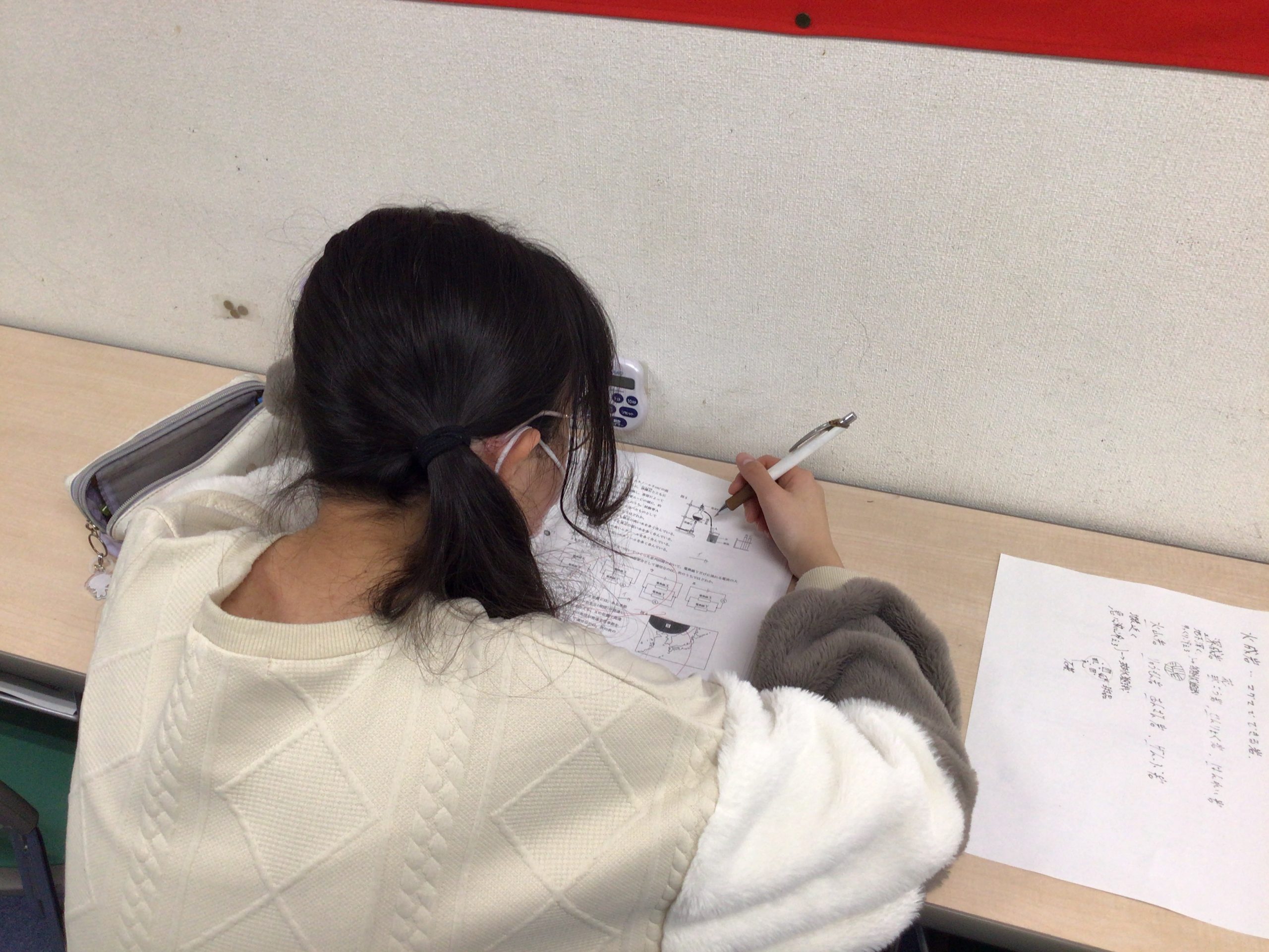 教師一同はその熱意に応えるべく、徹底的に解説を行いました。彼もまた、一言も漏らさぬようメモを取り、その場で何度も解き直しを繰り返していました。