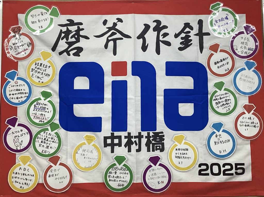 皆さんの意気込みや先生たちからのメッセージを書いた用紙も、磨いて輝くダイヤモンドのように錬磨しよう!と意味を込めてダイヤモンドを使いました。