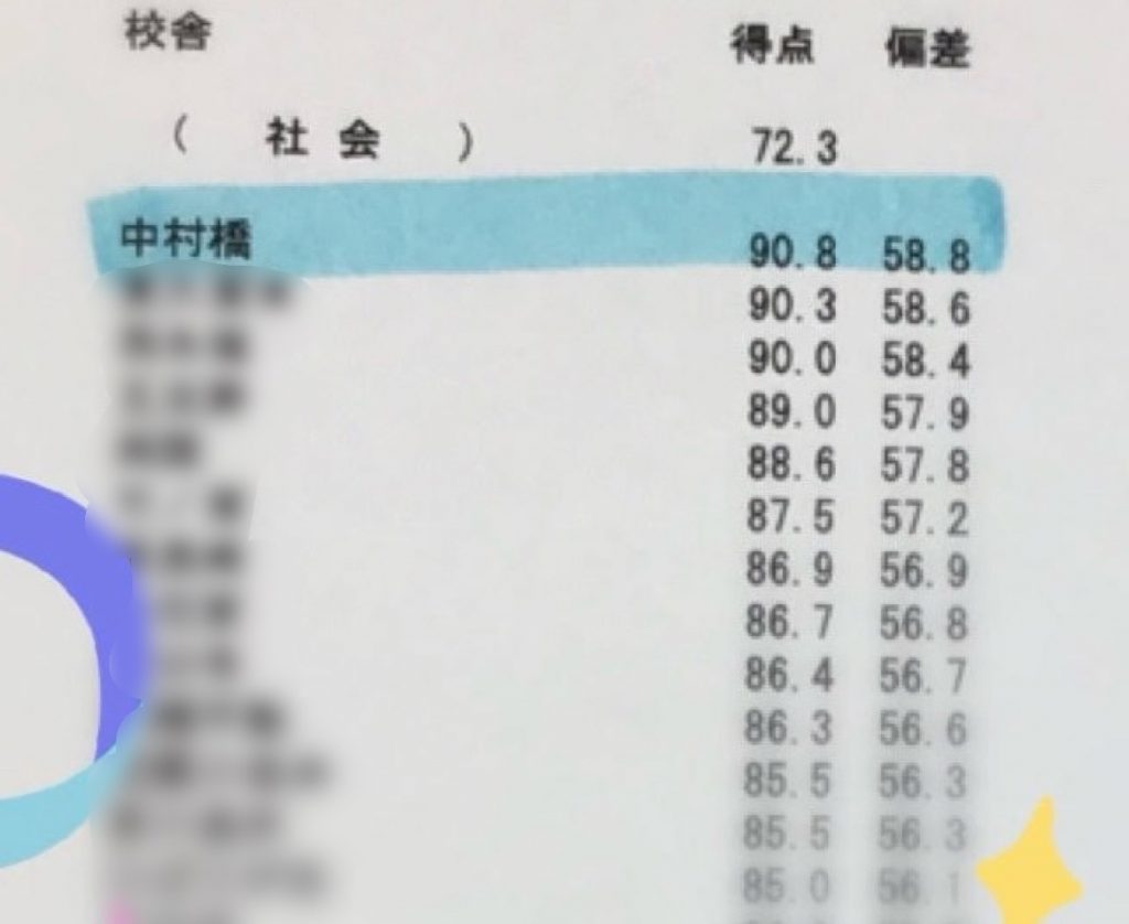 結果、平均点が伸び、小4社会の平均72.3点に対して、中村橋の小4社会の平均は90.8点!