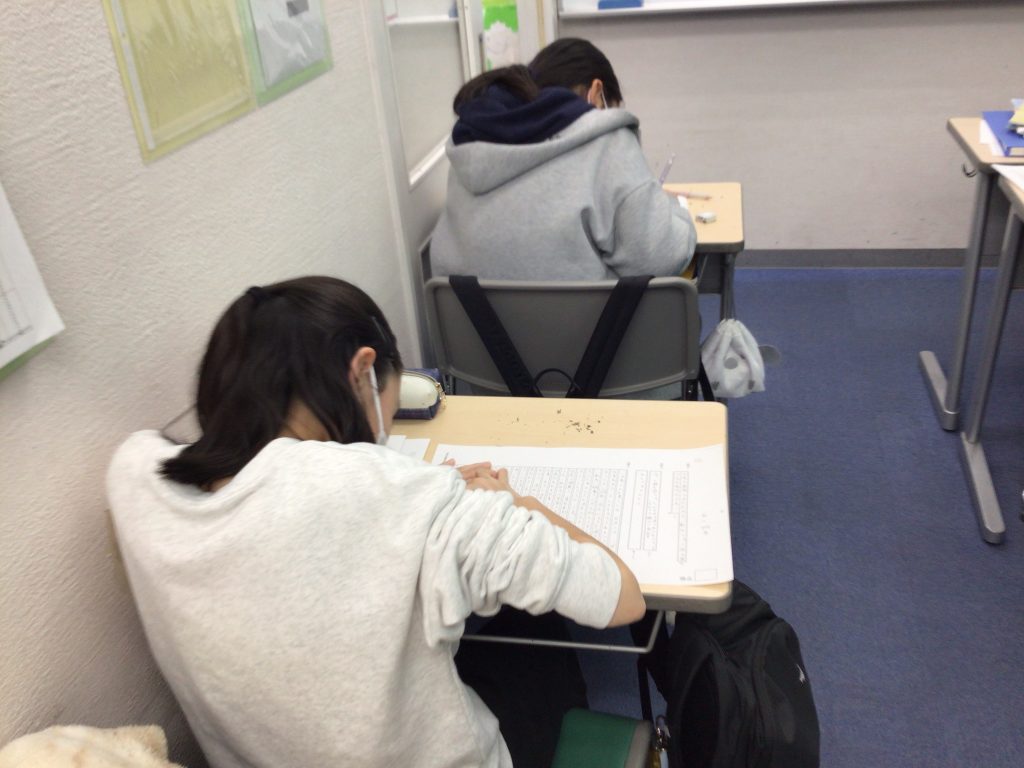 小6の生徒たちは授業のない日にも校舎に来て、過去問や課題に取り組んでいます。