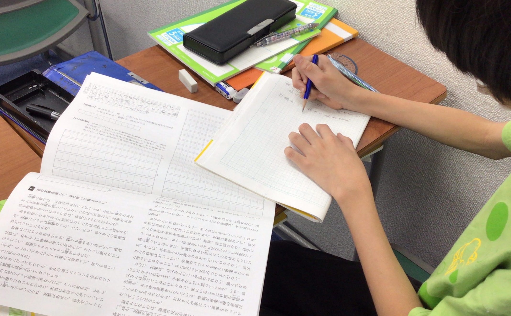 小5国語、文章を音読して内容を確認した後、問題を解いています