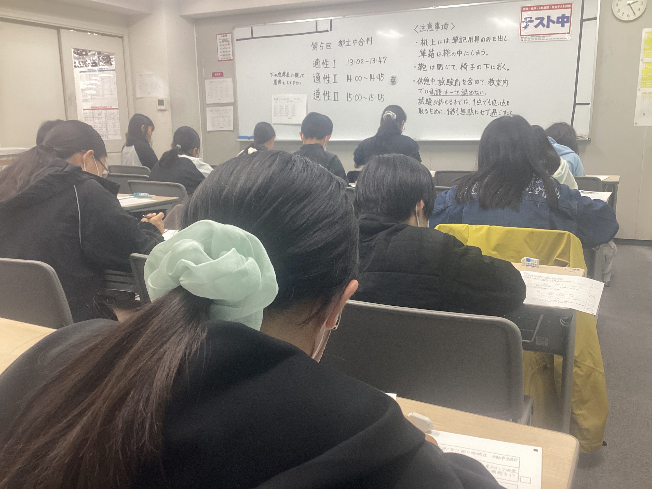 先週土曜日は校舎で中3生が駿台模試、小6生が合格判定模試を受けていました。