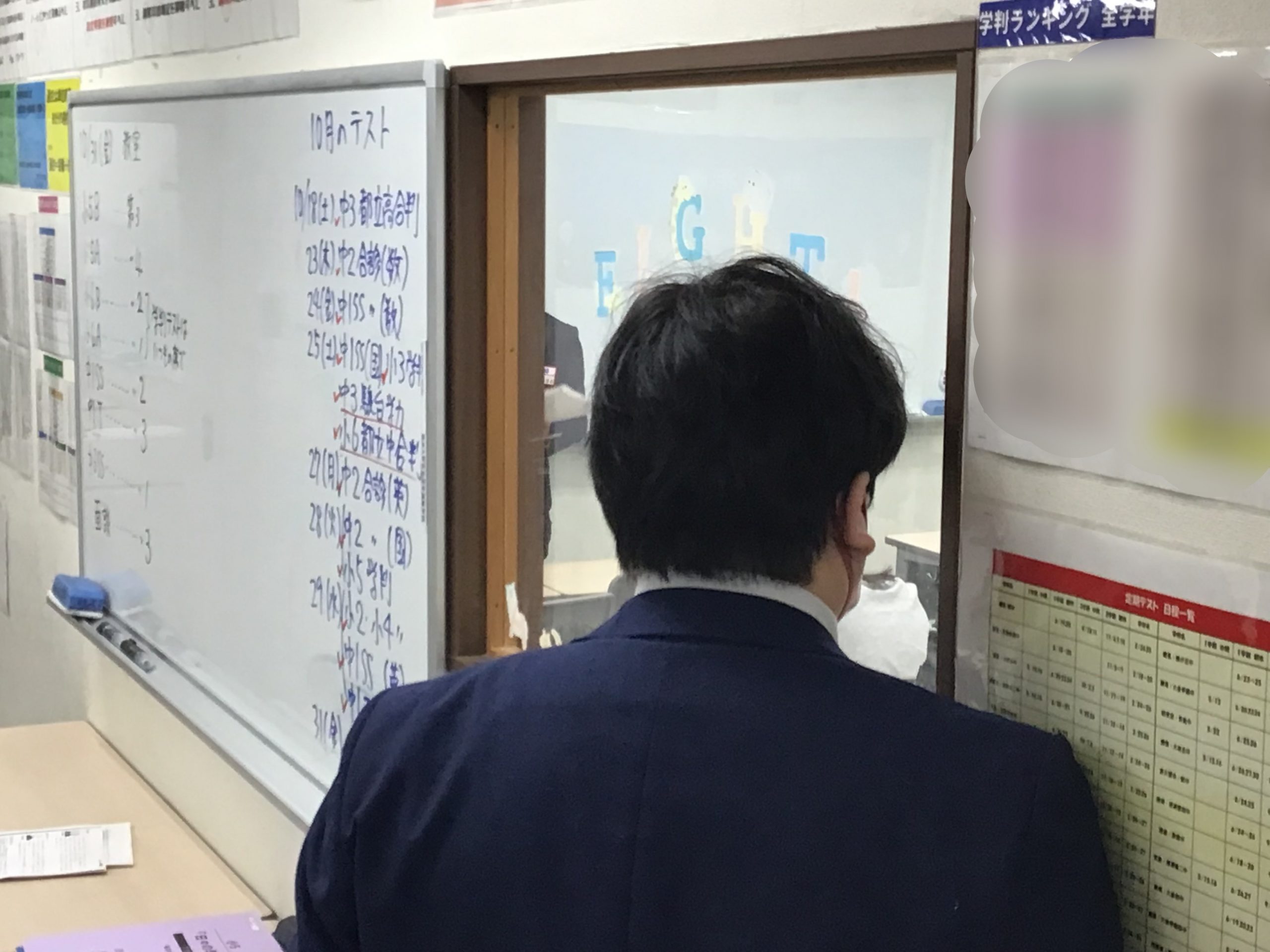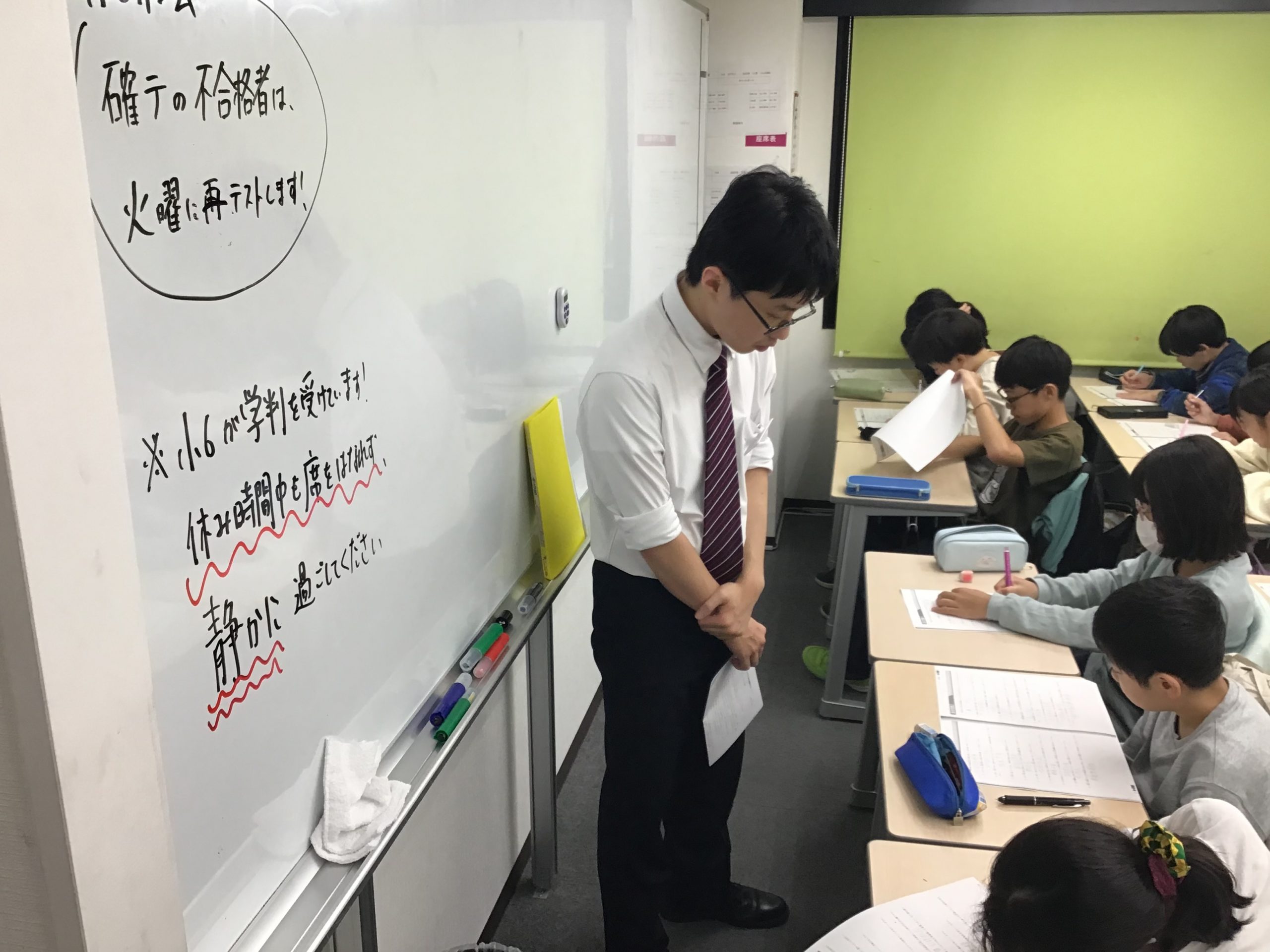 ① 小5の社会の小テスト 生徒の解答が気になって覗いてしまう漆山先生