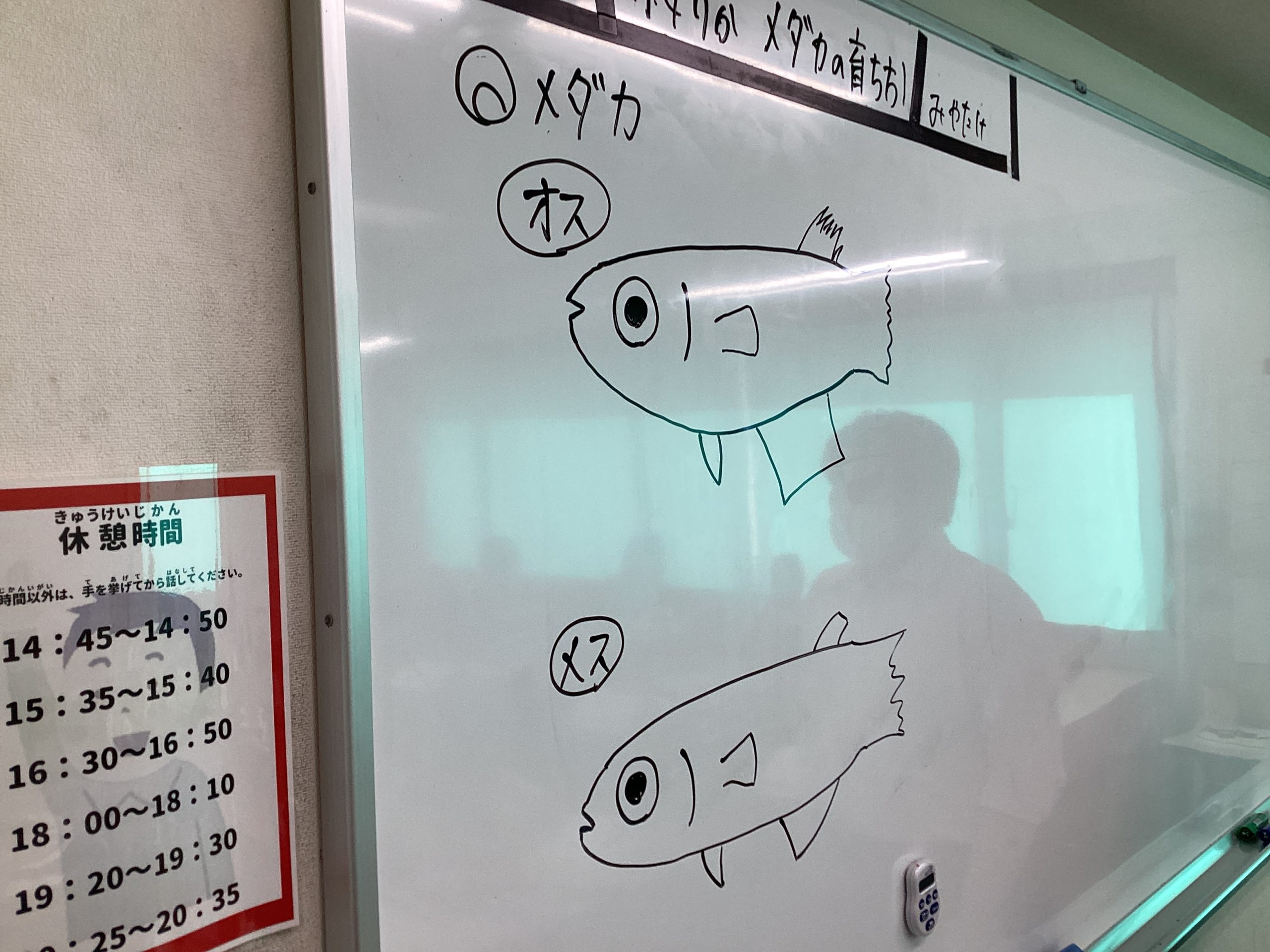 この絵で顕微鏡もメダカのオス・メスの違いも完ペキですね!