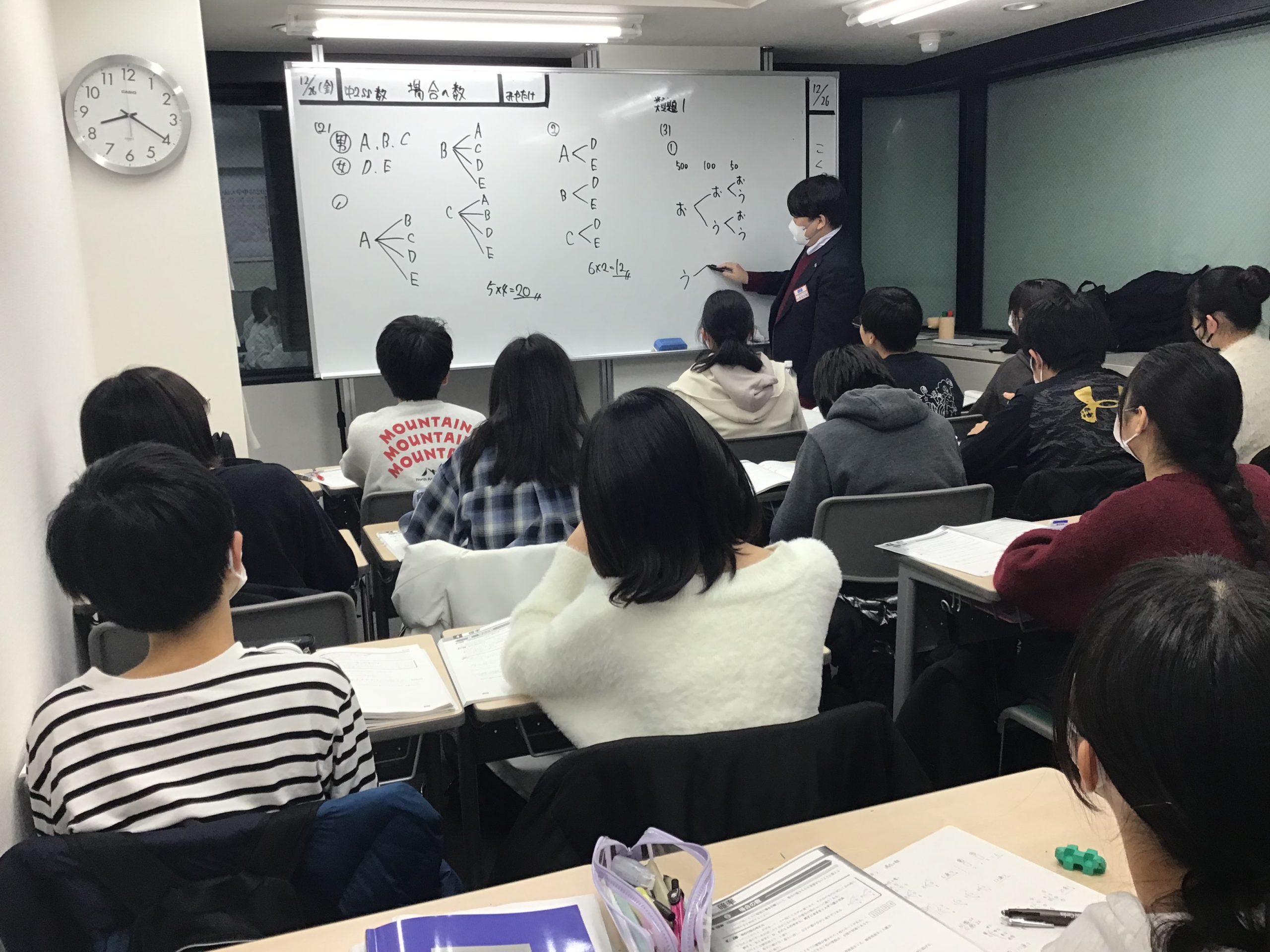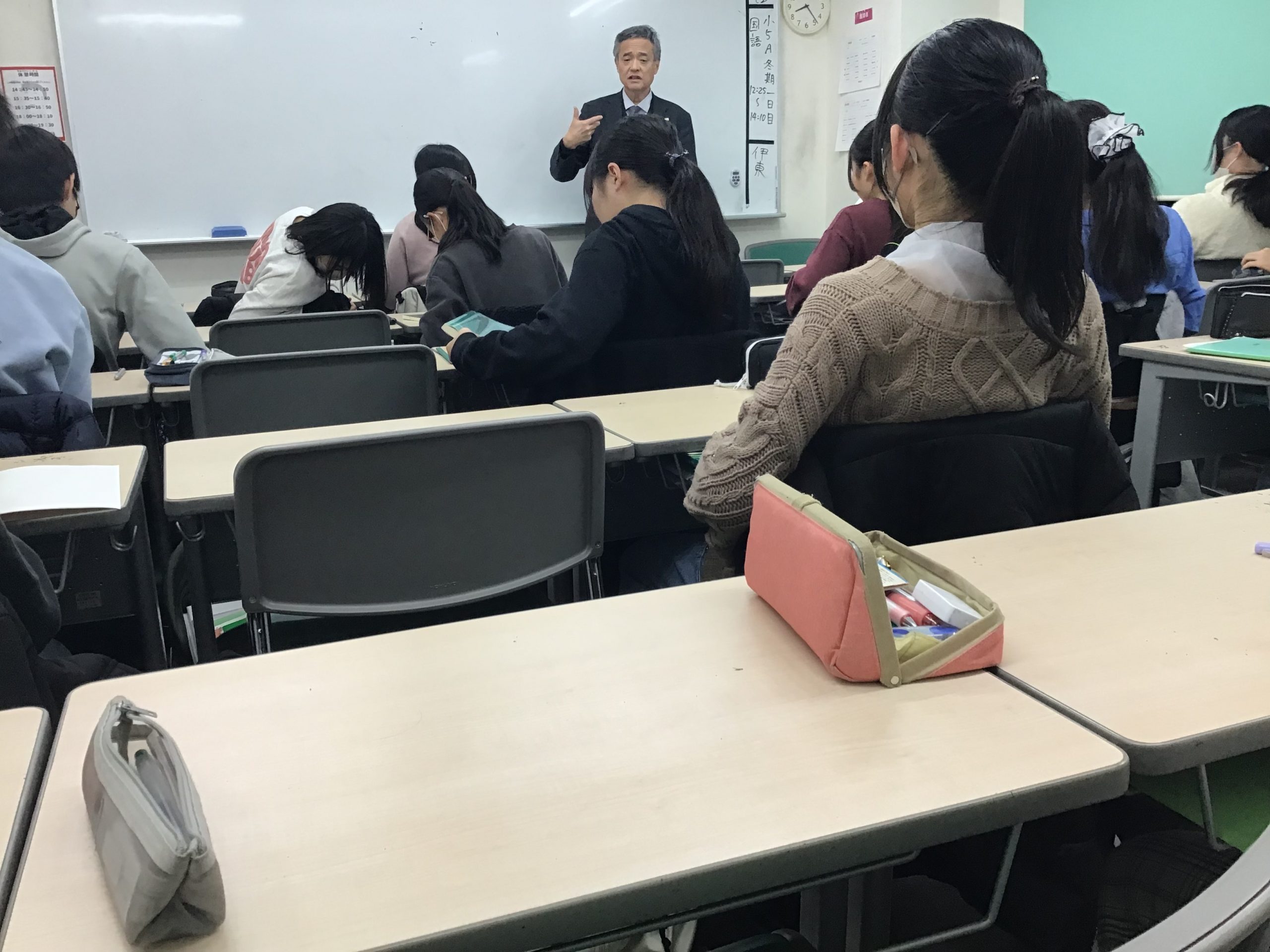校舎内は冬期講習中で、受験生たちが死に物狂いで勉強しています。