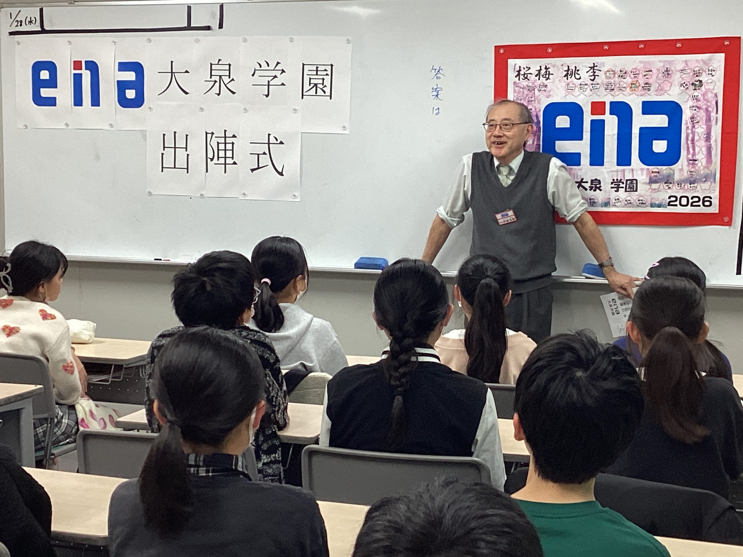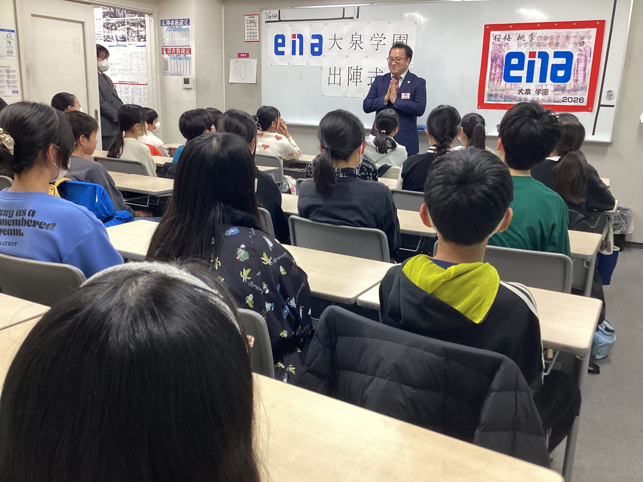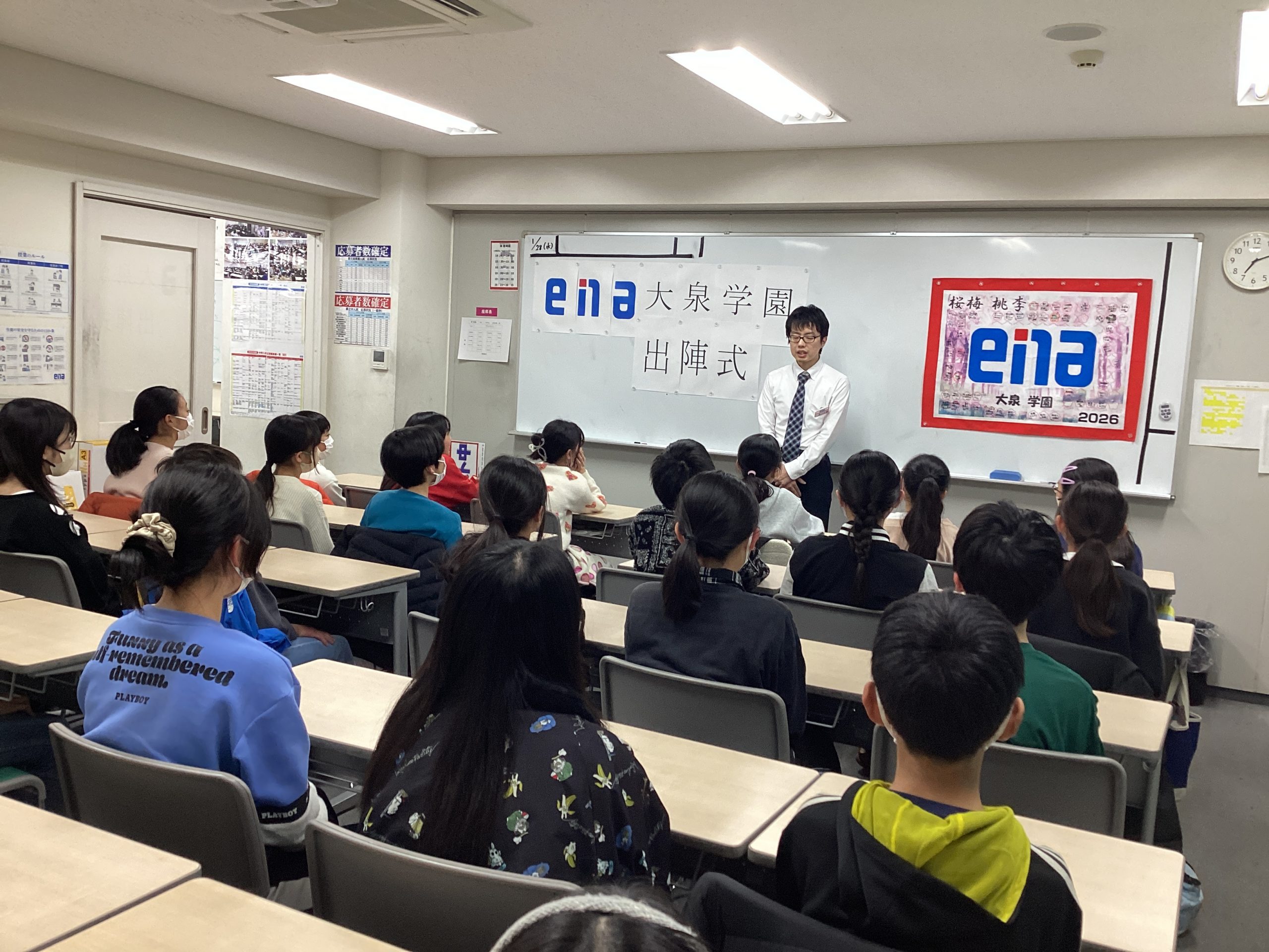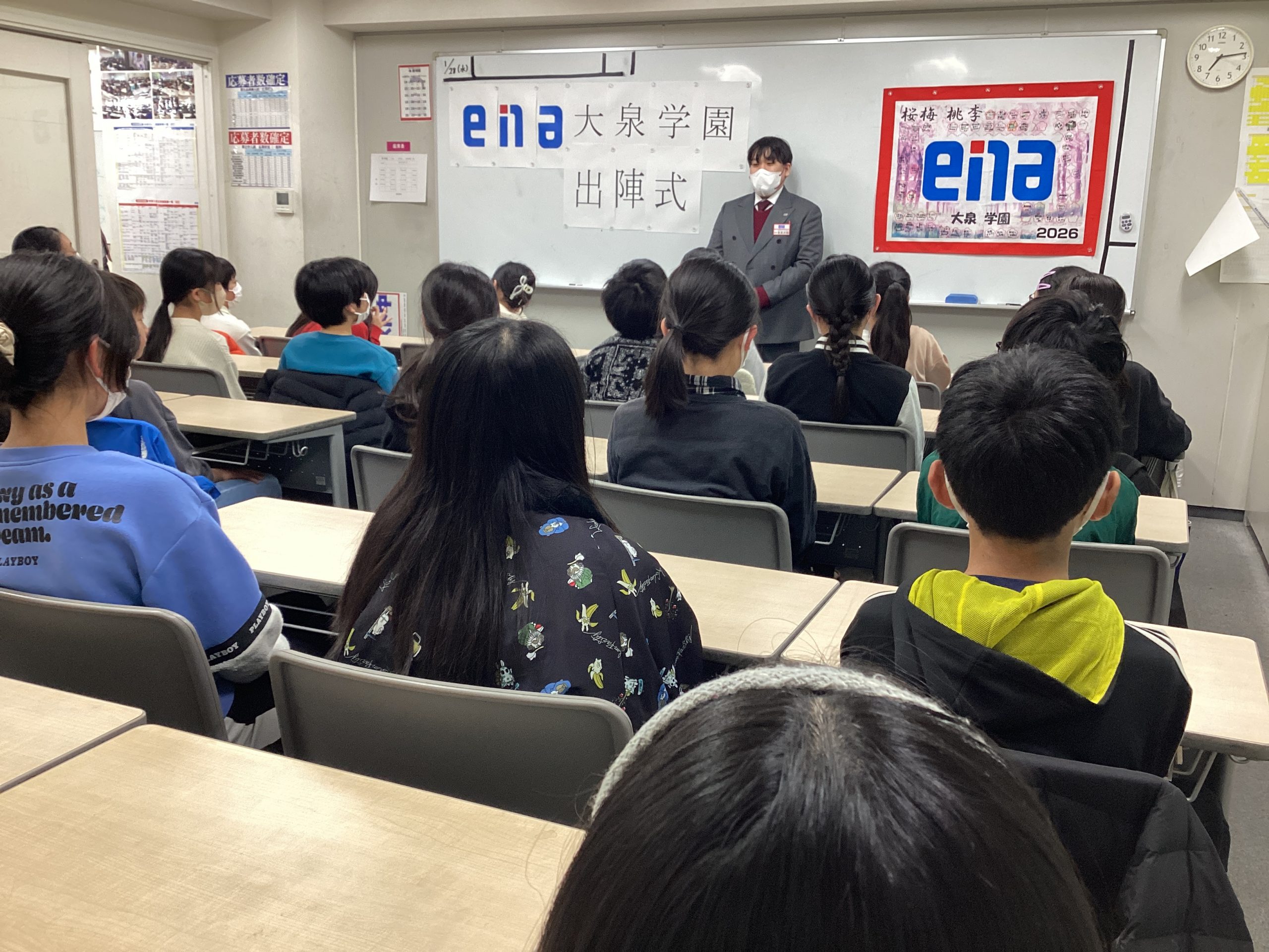 本日、ena大泉学園では、少し早いですが本番を迎える受験生たちのために「出陣式」を執り行いました。