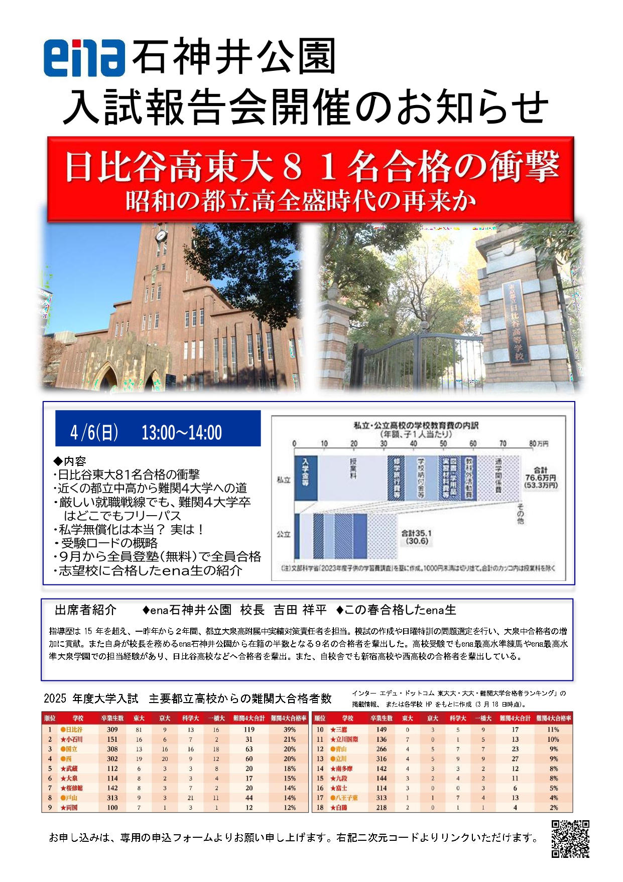 さて、4/6(日)13:00~14:00で入試報告会を実施致します。
