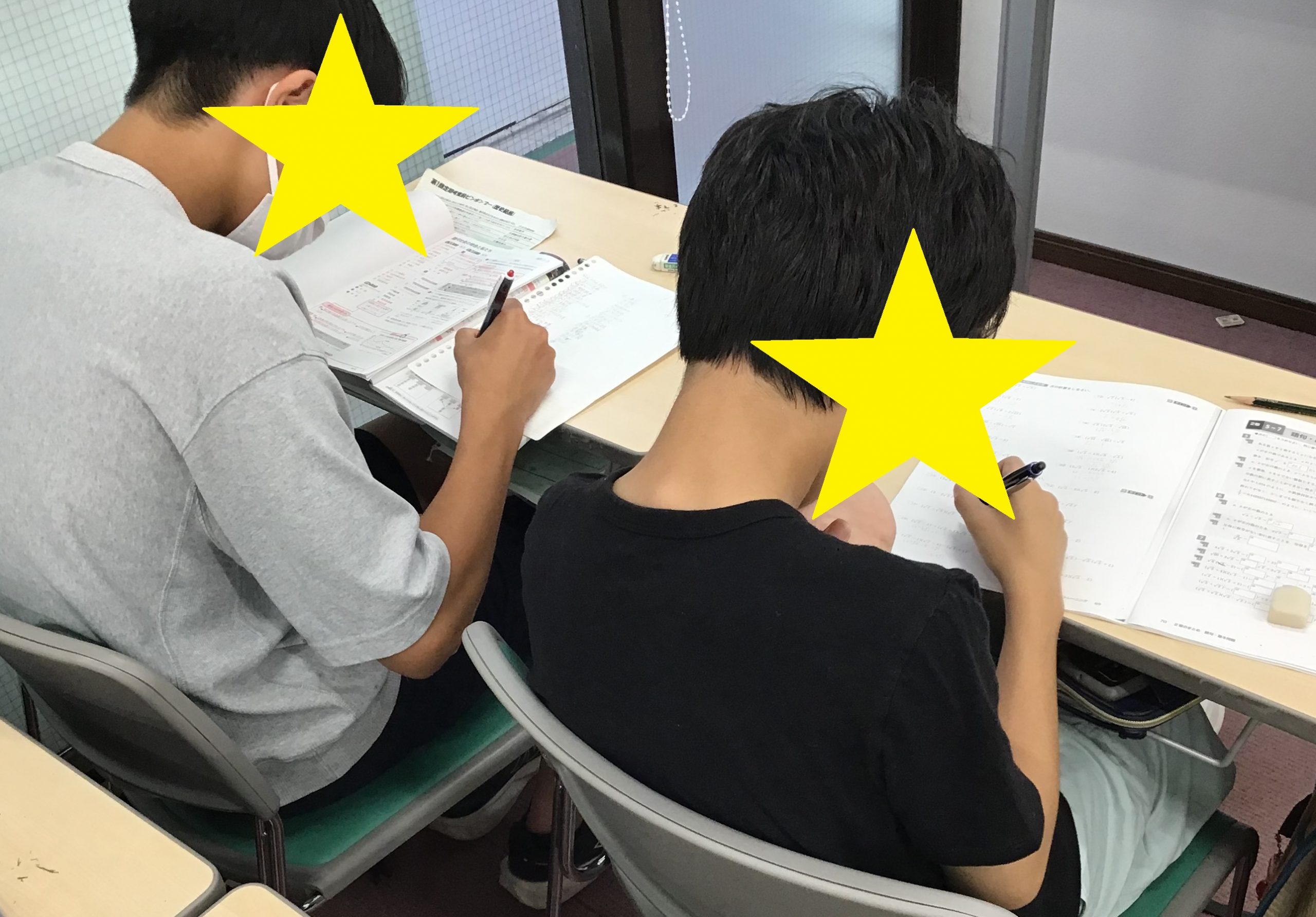 特に中学3年生はなんとしても成績を上げたい時期ですので必至に取り組んでいます。谷原中、三原台中は運動会ですが終了後に来て勉強している生徒も!