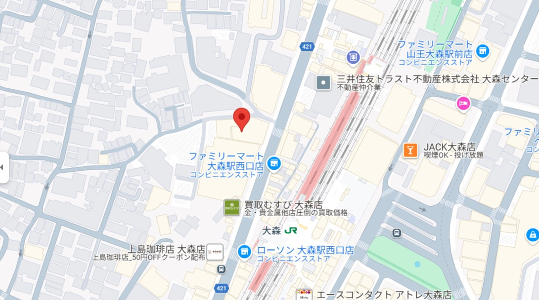 JR京浜東北線「大森駅」西口を出てすぐ。現校舎よりもさらに駅に近づきます。