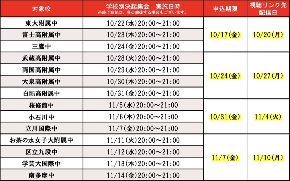 学校別決起集会のお知らせ