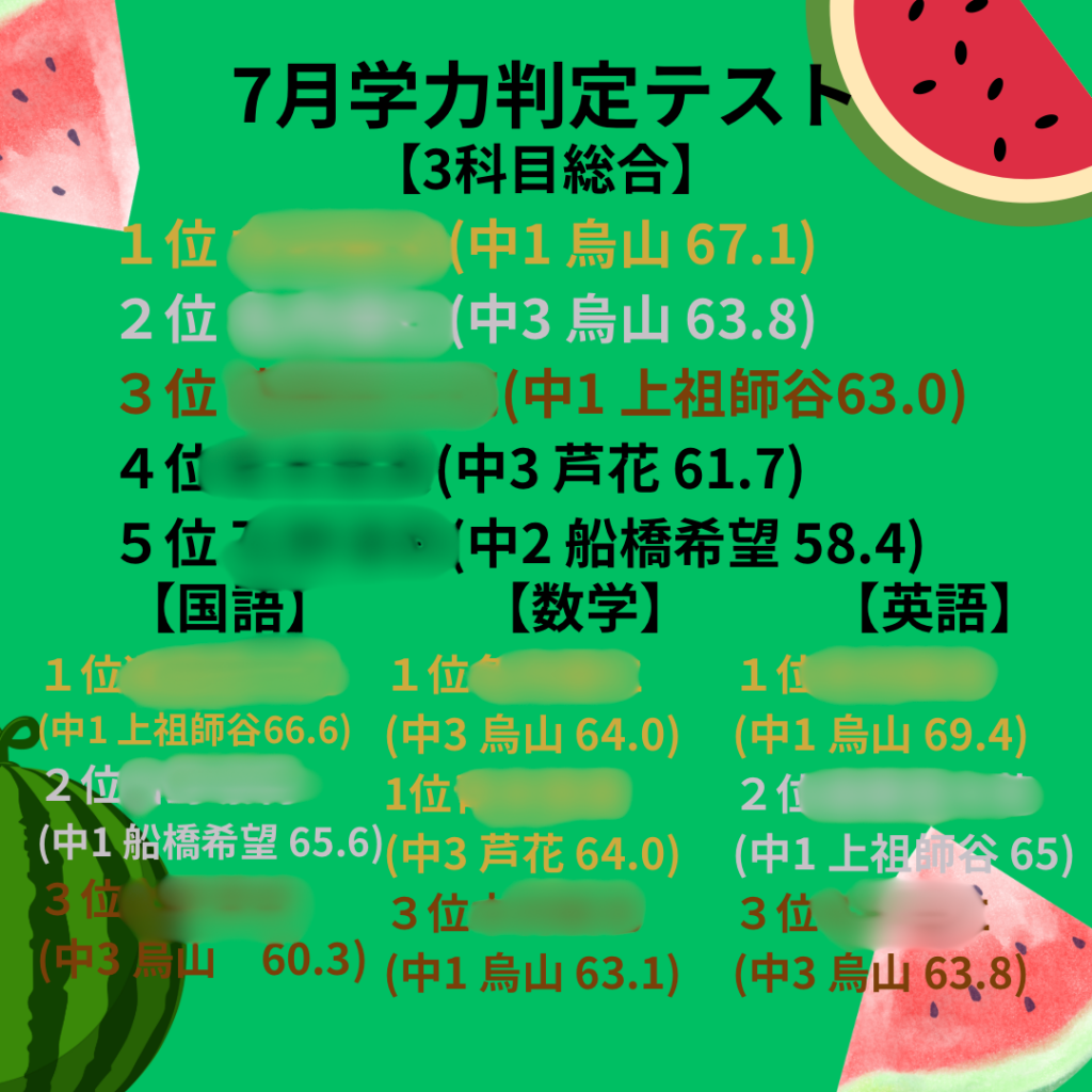 さて、中学生の7月の学判ランキングです!