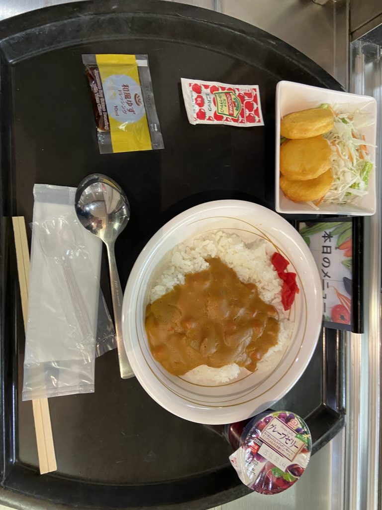 合宿場のご飯の写真です。毎年、人気のご飯。今回も恒例の「カレー、うどん」と