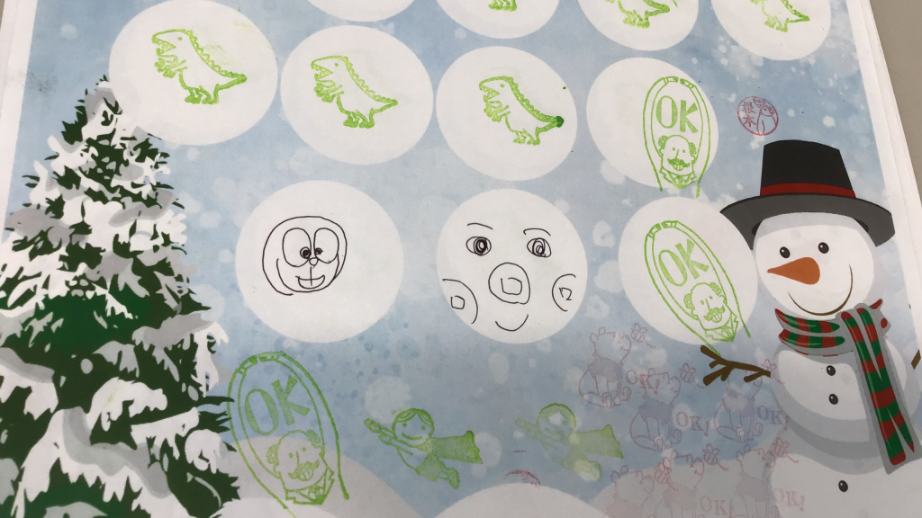個性あるスタンプ、シール、絵など証をもらえます!小テストは満点を!