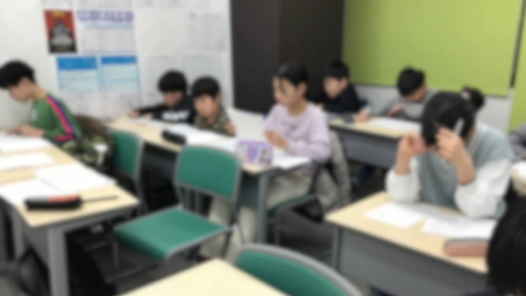 4科演習といわれる、週のテストにのぞむ小学5年生。