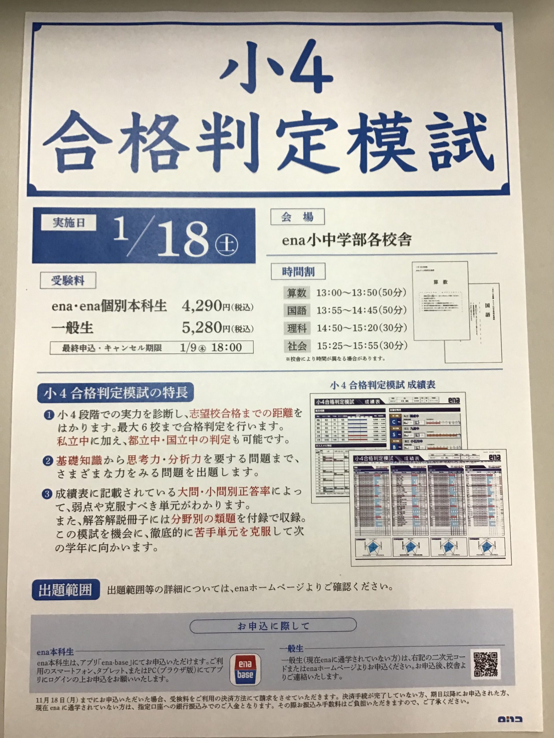 enaでは毎年1月に小学5年生対象の合格判定模試を実施しております。