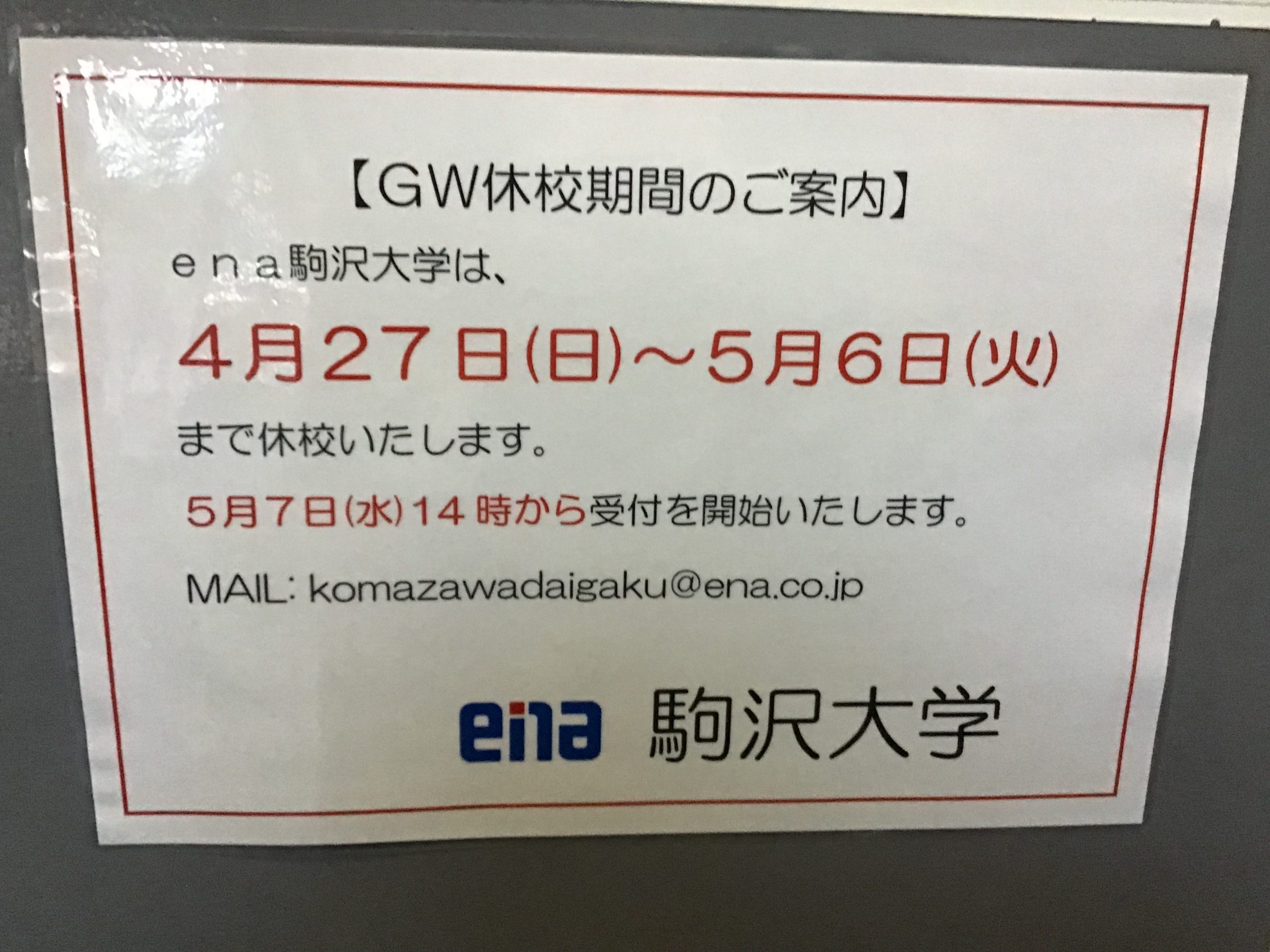 私たちenaの校舎もGWに入り4/27~5/6は休校に入ります。