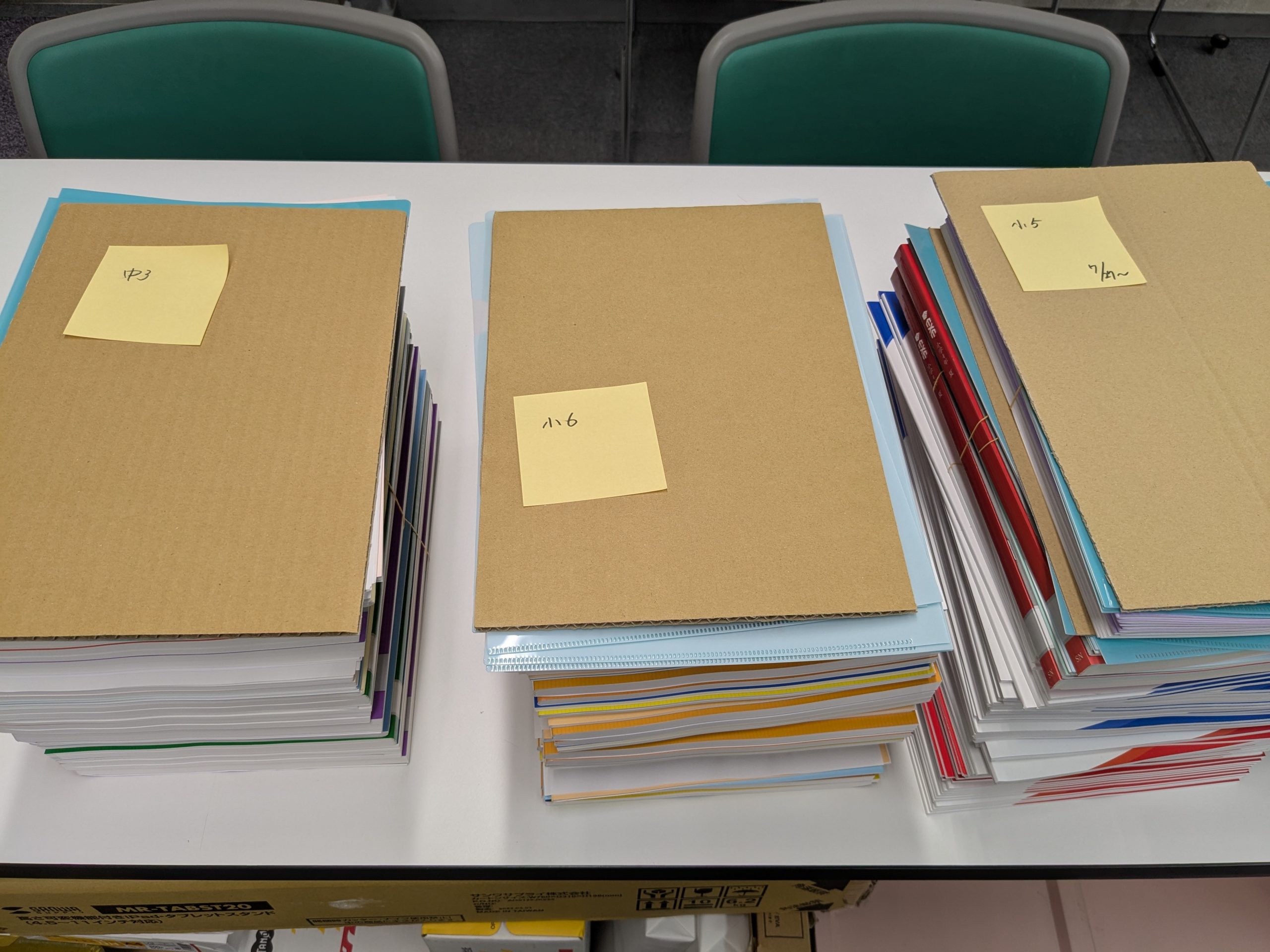 こちらは生徒たちに渡すテキストの山です。たくさんたくさん学んでもらいます。