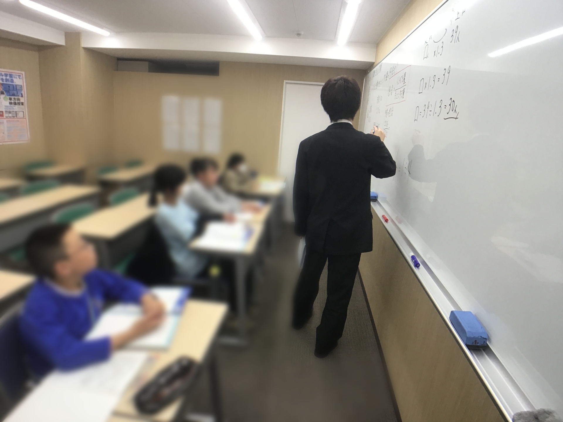 数学も通常コースでは連立方程式及び連立方程式の利用(応用問題及び文章題)にも入っています。ガッツリやらせています。難関私立レベルのものもやらせています。連立方程式で文字3つ出てくるのに式2つの問題は個人的にすごく好きです♪